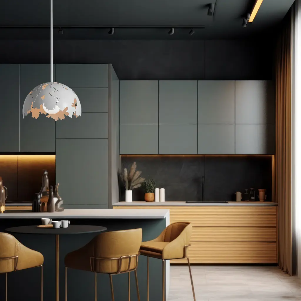 The Pangea 1-Light Pendant is "much like the tectonic plates that originally formed the supercontinent known as Pangea," according to Designer David Martin. "The forged plates collide and merge forming a unified whole." A metal dome of forged steel creates a fusion of nature-inspired design and bold aesthetics, making a statement in any space.
