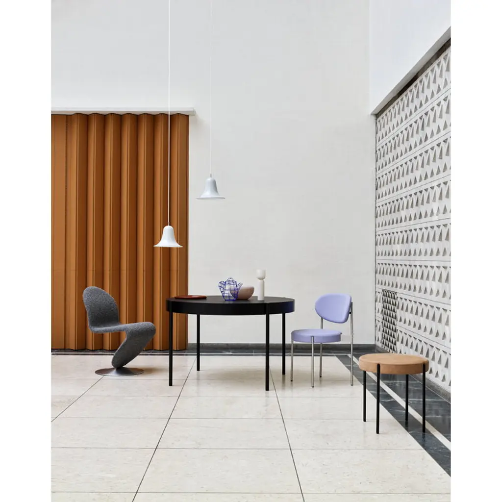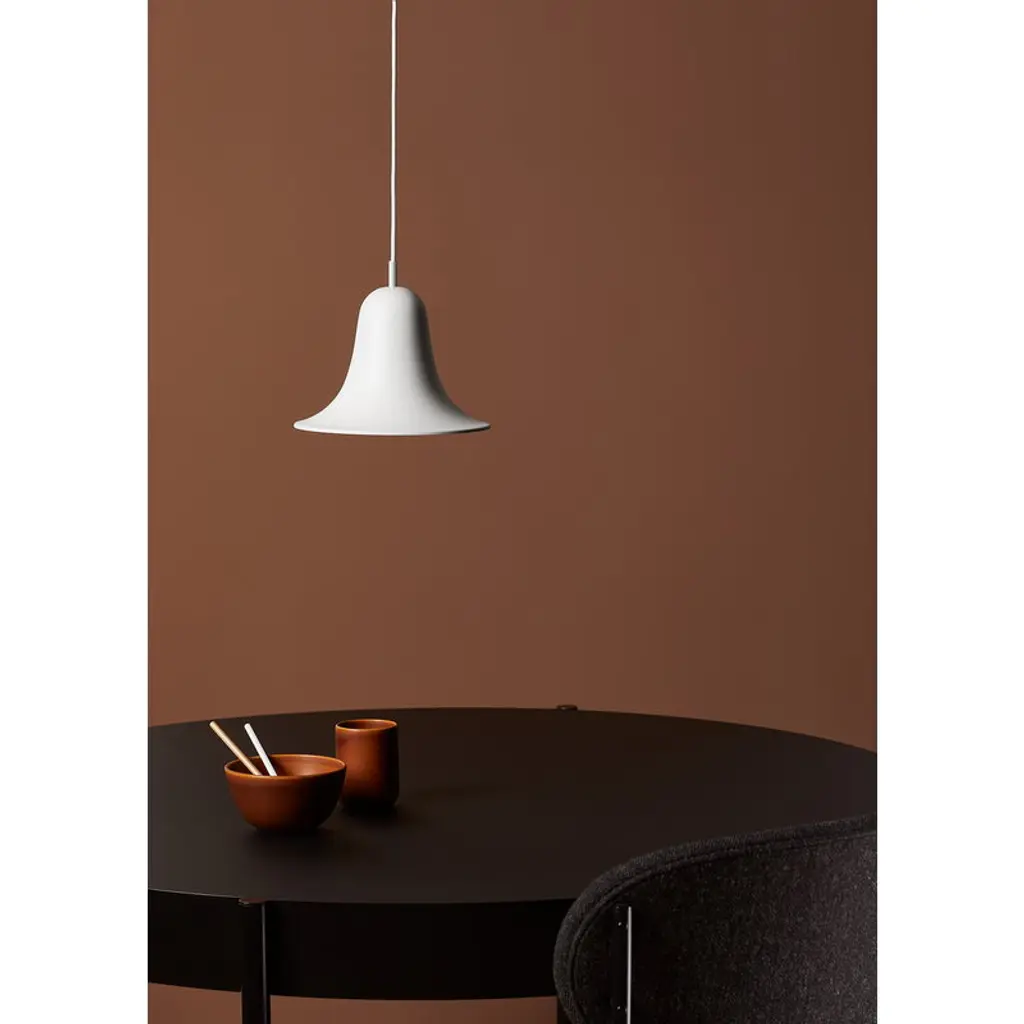 Designed by Verner Panton in 1980 and today manufactured by Verpan, the Pantop pendant lamp is a fine example of Panton’s style in the late 20th century. Pantop features a flaring, bell-shaped lampshade that directs the light right underneath. The hemisphere-shaped canopy complements the geometric look of the luminaire. Pantop is both a joyful and elegant design icon that catches the eye, for instance, above the dining table, either individually or in clusters.