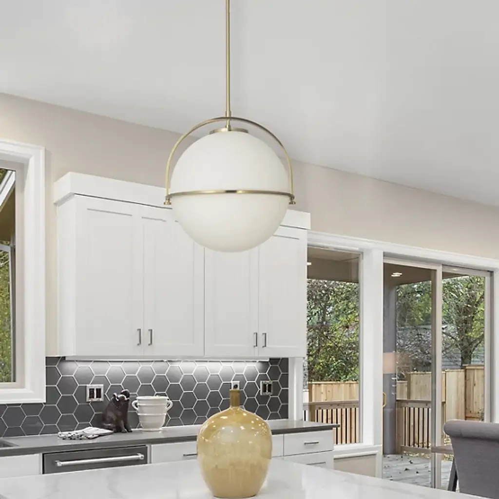 Introducing the Paola Pendant by Dainolite, a fusion of contemporary style and warm functionality. Crafted from high-quality metal and glass, this pendant breathes life into any room it graces. Its globe-shaped design and the fine blend of materials make it a timeless addition to kitchen, foyer, or dinette spaces. The Paola Pendant encompasses the essence of a contemporary brass pendant, confidently illuminating your room whilst adding a touch of modern sophistication.