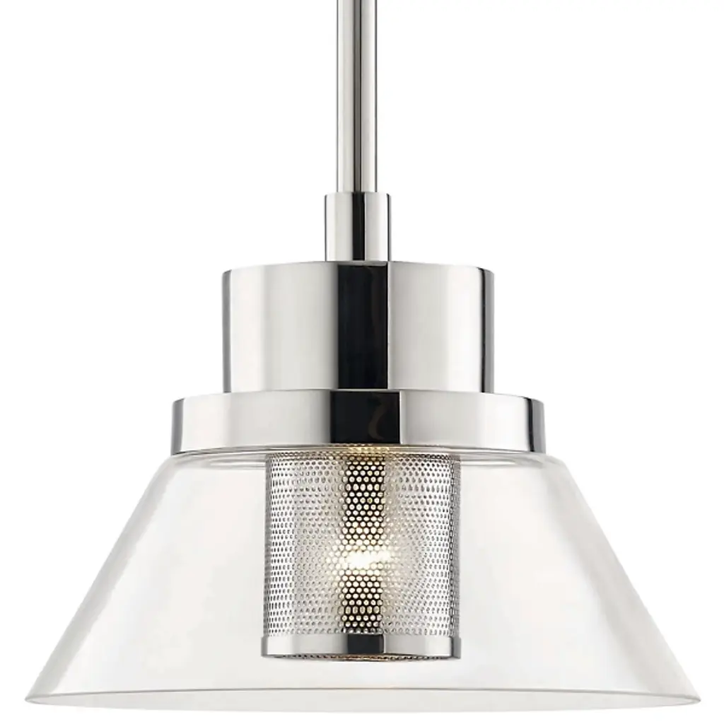 The Paoli Pendant by Hudson Valley Lighting gives industrial style a chic new perspective. The modern Steel and Glass design features a stepped cylinder top with a mesh diffuser and Clear Glass tapered shade. As an added layer of lighting in a modern kitchen or lofted above a farmhouse style dining table, this versatile pendant light matches a wide range of styles and settings.