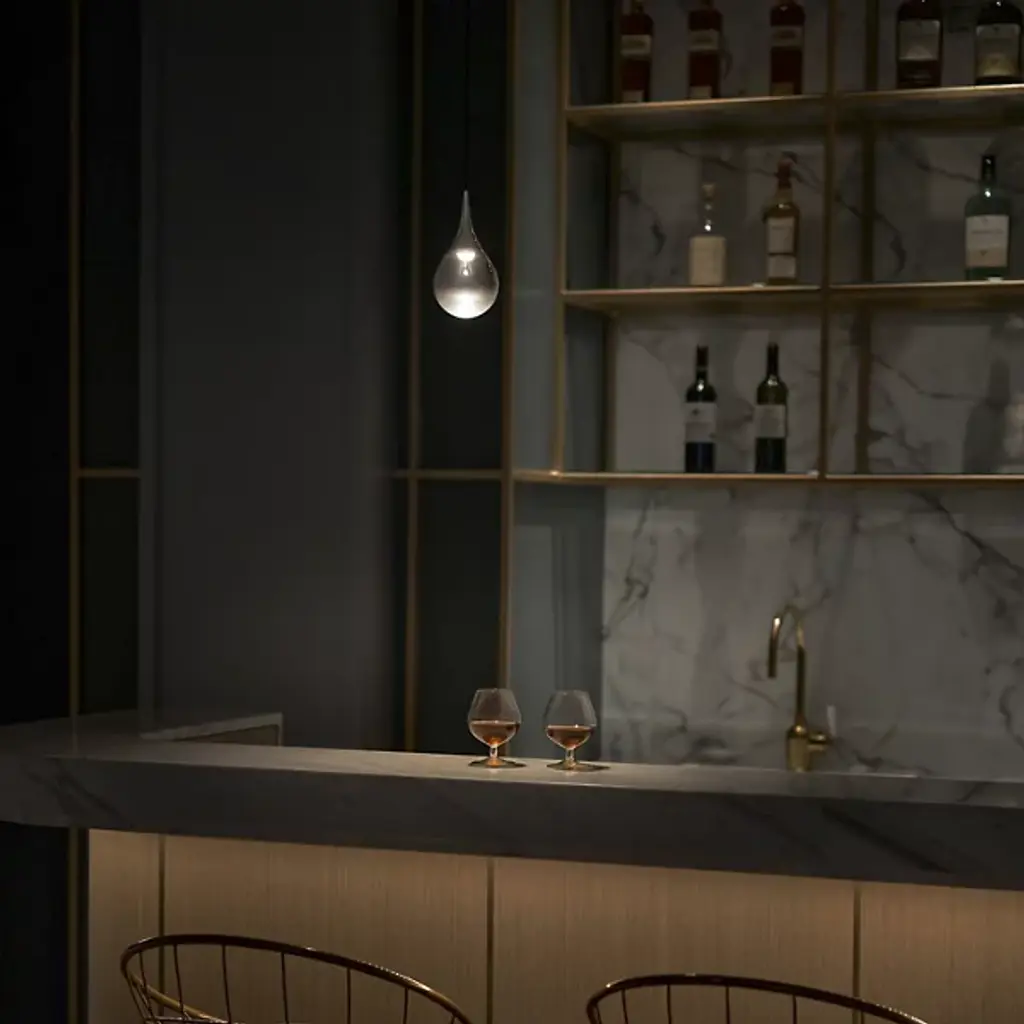 An emotional light gracing your room as a beautiful teardrop. Create an intimate atmosphere in your rooms with the jewelry-inspired Paopao P1 LED Mini Pendant from Seed Design. It’s a piece complementing the home’s quiet visual aesthetic with a minimalist modern design. An ultra-fine cord helps give the sphere the illusion of floating the air, especially with the lights on. Crafted from metal, a pointy holder starts off the pendant’s teardrop silhouette. A mouth-blown and vacuum plated glass shade continues below in a seductive shape. The shade delights with beautiful reflective details. Sporting an LED bulb, the teardrop swells up with a golden hue as it creates an ambient downlight.