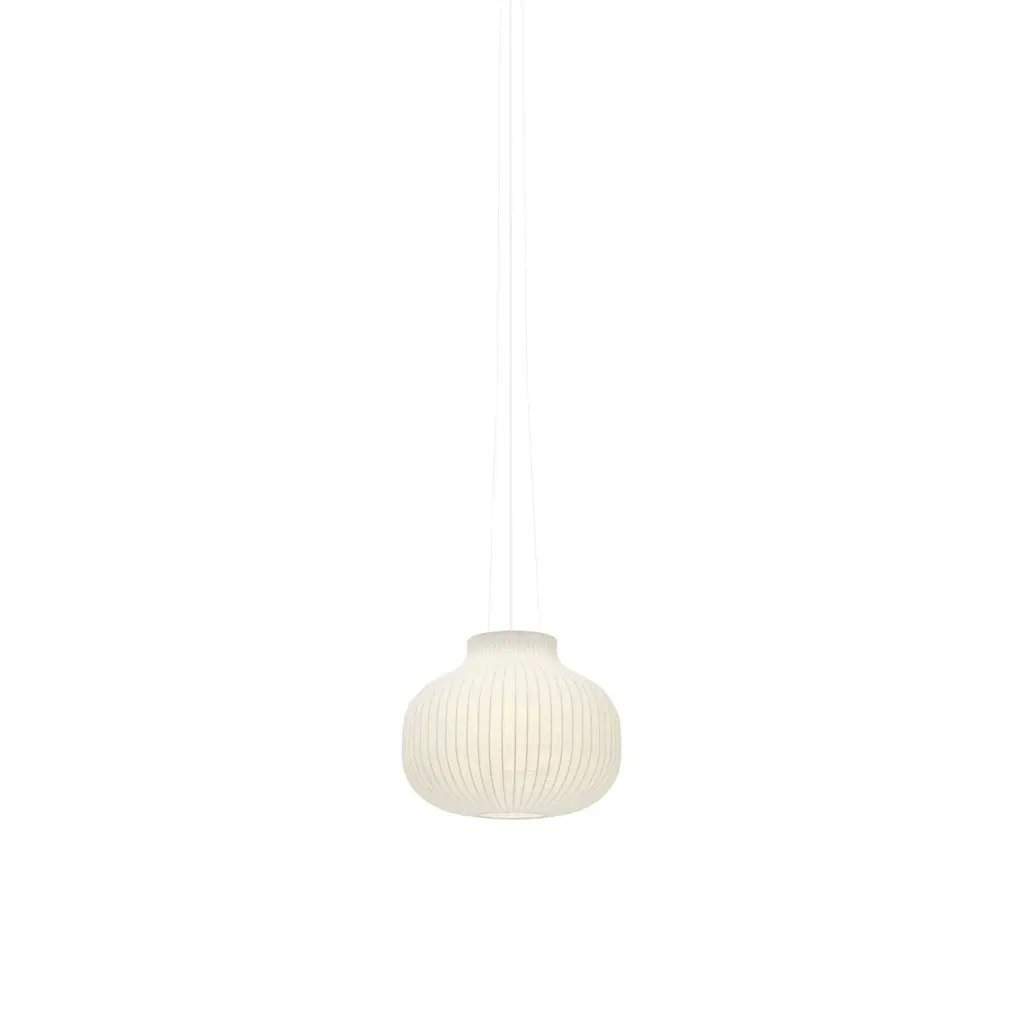 The Papier 40 Single Pendant by Nina Bruun for Made By Hand captures the beauty of soft, fluid curves. Each piece is carefully reshaped from a common form to achieve a harmonious, sculptural aesthetic. Made from rice paper, the pendant diffuses light gently, creating a warm, atmospheric glow. Its translucent structure, combined with the material’s lightness and tactile appeal, gives the lamp an airy, floating presence that brings elegance and serenity to any space.