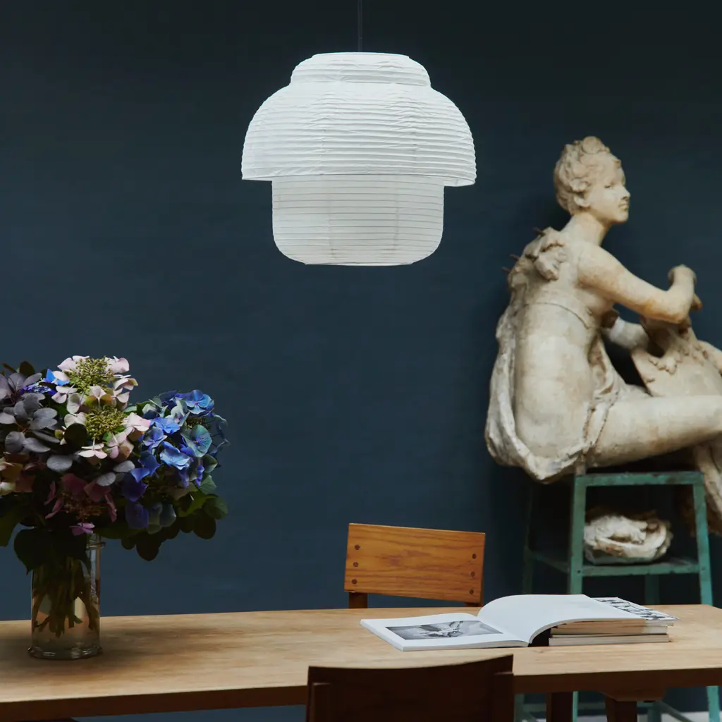 Give your home an elegant makeover with the Papier lighting series from Made by Hand. Inspired by the lightness of rice paper, the Papier Double Pendant Lamp 40 has a softly curved shade with rounded forms of different sizes and shapes. Resembling a floating sculpture, this pendant light doubles as an eye-catching decorative piece, whether it’s in use or not. However, turning the light on accentuates the horizontal line patterns, enhancing the beauty of the rice paper shade. Perfect for dining areas and kitchens, the Papier Double Pendant Lamp 40 looks stunning on its own or alongside other pendant lights from the same collection.