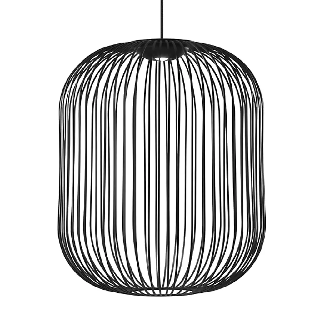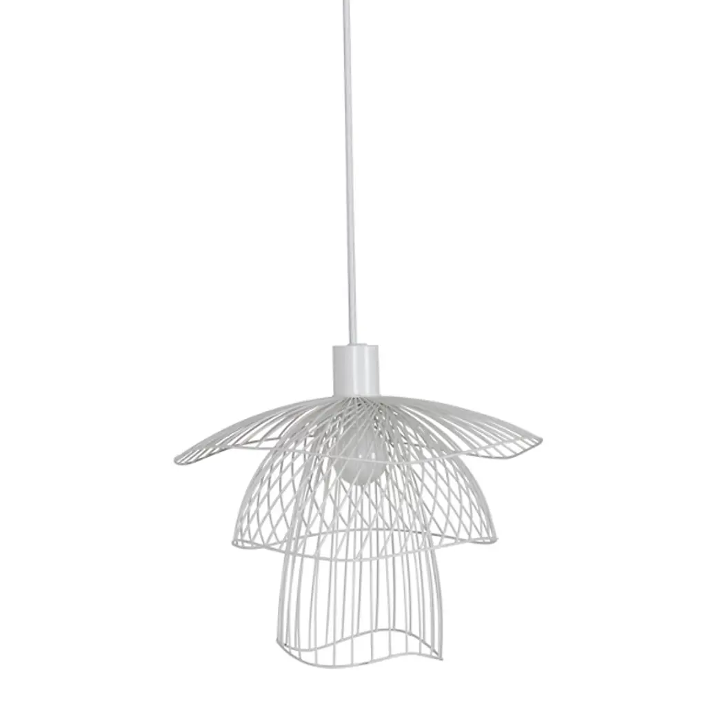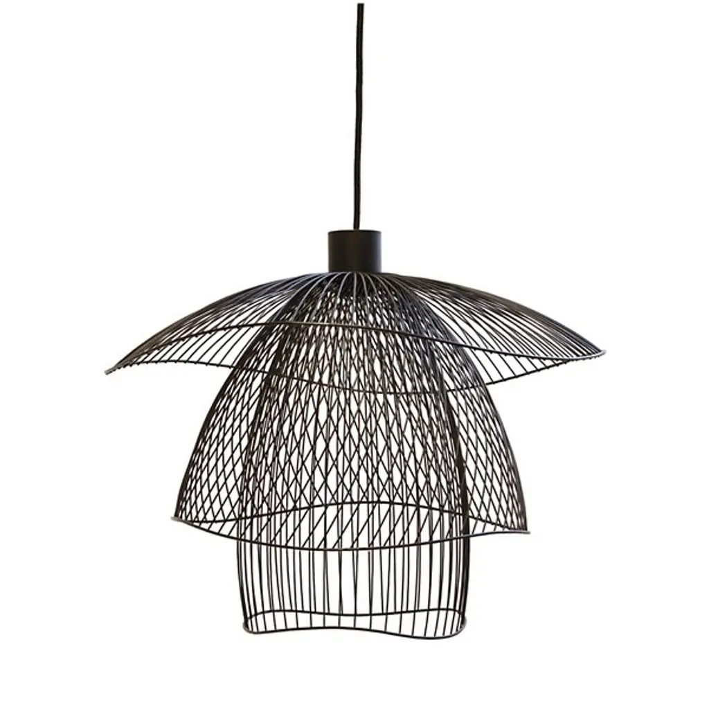 A simple, modern piece, the Papillon Pendant from Forestier brings beauty and emotion to the space. Designed by Elise Fouin in 2015, painted iron metal lines form three shades, each with a distinct shape as they layer within each other and hang from the ceiling from the end of a thin downrod. A single bulb at the center shines a bright, full glow through each shade, elevating the allure of the space with a welcoming and relaxing ambiance.