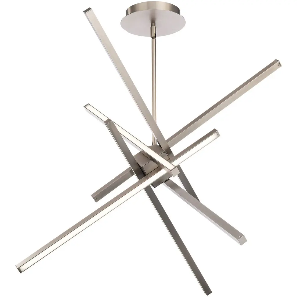A multi-linear sculpted structure with lean minimal lines. Artisanal quality and attention to detail with a truly distinctive modern mix of luminous conduits. The parallax pendant is a modern minimalist fixture featuring rotatable light bars for onsite customizations to create different looks and light delivery. Offered in a 18in, 26in or 38in horizontal diameter in black, brushed nickel and aged brass finishes, this pendant makes a bright point in any modern space. Parallax is effortlessly deliberate. Each arm is illuminated along the entire length with energy-efficient integrated LED's providing a long-lasting maintenance-free bright and even illumination. The choice of three handsome finishes create a stunning contrast between light and fixture.