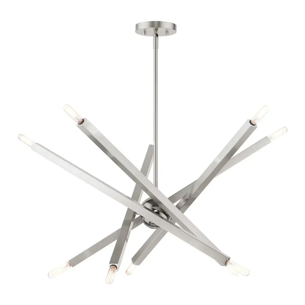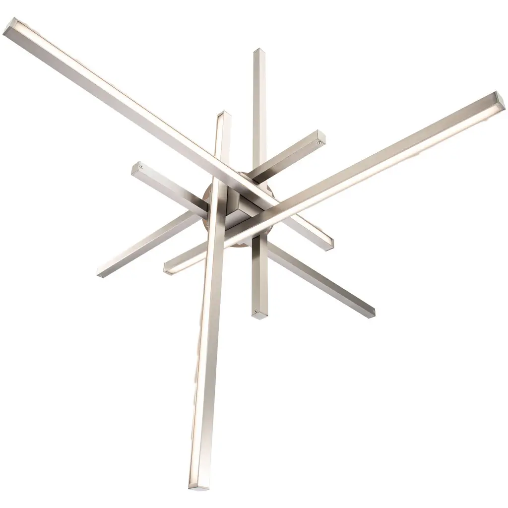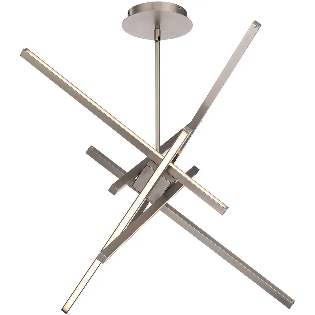 A multi-linear sculpted structure with lean minimal lines. Artisanal quality and attention to detail with a truly distinctive modern mix of luminous conduits. The parallax pendant is a modern minimalist fixture featuring rotatable light bars for onsite customizations to create different looks and light delivery. Offered in a 18in, 26in or 38in horizontal diameter in black, brushed nickel and aged brass finishes, this pendant makes a bright point in any modern space. Parallax is effortlessly deliberate. Each arm is illuminated along the entire length with energy-efficient integrated LED's providing a long-lasting maintenance-free bright and even illumination. The choice of three handsome finishes create a stunning contrast between light and fixture.