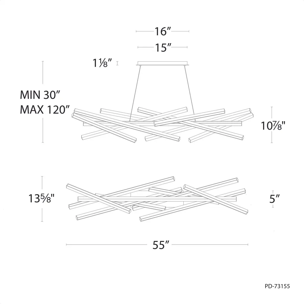 Introducing the Parallax LED Linear luminaire from dweLED by WAC. A clean, linear design that adds a refined touch to the spaces it brightens. A series of eight slender, linear light bars are layered over one another in a criss-cross fashion for a crisp display of illumination. Streamlined and structured, PC diffusers are fit precisely within their aluminum frames to filter an even layer of energy-efficient light onto surroundings. High quality LEDs highlight this design with beautiful finishes that complete the luminaire. Ideal for illuminating a dining room, living area, or other spaces where you want to make an exceptional design statement. This LED luminaire is available in a bold black, aged brass, or brushed nickel finish. This LED luminaire illuminates with LEDs that feature a high 90 color rendering index and a CCT of 3000 Kelvin. Parallax operates on a 120-220-277v universal input voltage system. The LEDs have a 50,000 hour rated life and ETL and cETL listed for damp locations. This LED luminaire is California Title 24 rated for the highest energy efficient requirements today. Dims down nicely with an electronic low voltage or TRIAC dimming system.