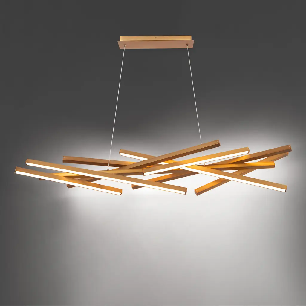 Parallax Linear Pendant Ceiling Light In Aged Brass, Dweled