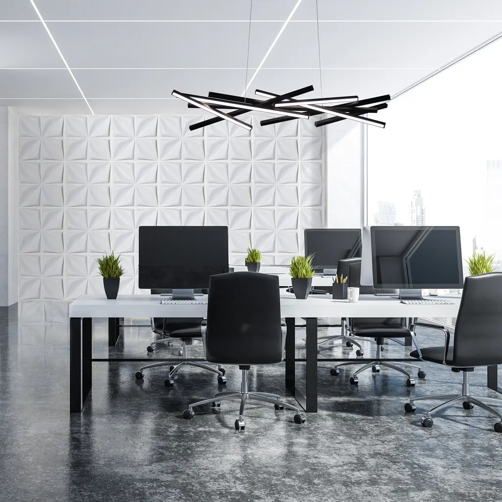 Introducing the Parallax LED Linear luminaire from dweLED by WAC. A clean, linear design that adds a refined touch to the spaces it brightens. A series of eight slender, linear light bars are layered over one another in a criss-cross fashion for a crisp display of illumination. Streamlined and structured, PC diffusers are fit precisely within their aluminum frames to filter an even layer of energy-efficient light onto surroundings. High quality LEDs highlight this design with beautiful finishes that complete the luminaire. Ideal for illuminating a dining room, living area, or other spaces where you want to make an exceptional design statement. This LED luminaire is available in a bold black, aged brass, or brushed nickel finish. This LED luminaire illuminates with LEDs that feature a high 90 color rendering index and a CCT of 3000 Kelvin. Parallax operates on a 120-220-277v universal input voltage system. The LEDs have a 50,000 hour rated life and ETL and cETL listed for damp locations. This LED luminaire is California Title 24 rated for the highest energy efficient requirements today. Dims down nicely with an electronic low voltage or TRIAC dimming system.