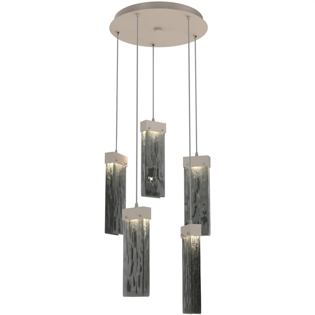 Featuring floating LED-lit panels of glittering kiln-fused & hand-textured glass, this versatile chandelier style enables customization of the placement and height of each pendant. Each Parallel glass panel is skillfully crafted by warm glass artisans in our Salt Lake City facility. Choose from several glass colors and finishes.