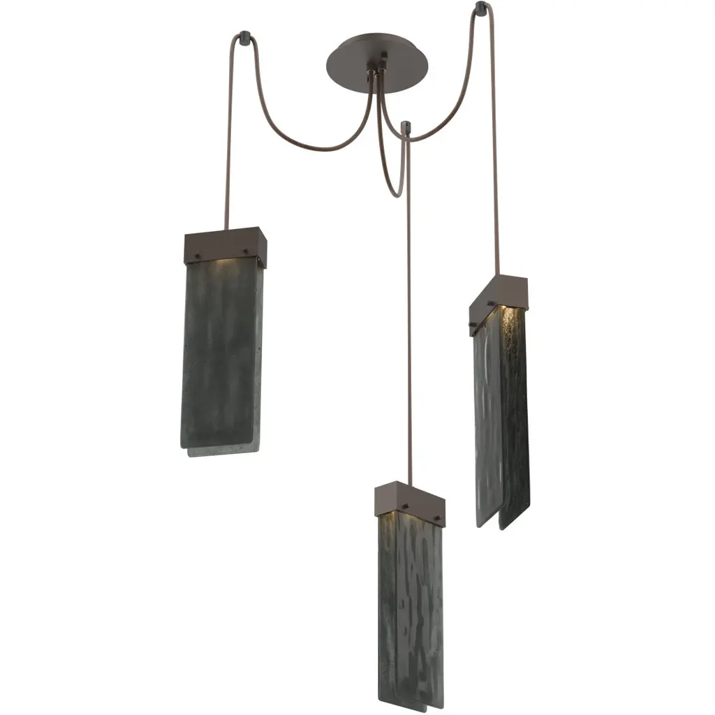 Parallel Led 13.3 Inch Flat Bronze Swag Multi-Pendant Ceiling Light In 3000k Led, Smoke Granite