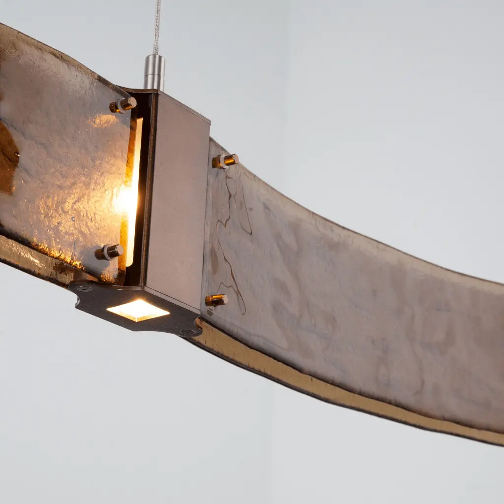 Parallel Curved Linear Suspension-Novel Brass-Granite Glass - Smoke-Stainless Steel Cable-LED