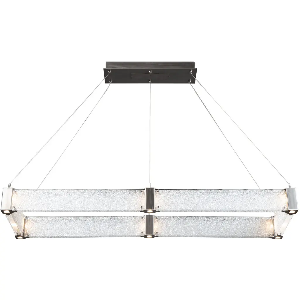 Parallel Rectangular Chandelier - 60-Burnished Bronze-Granite Glass - Smoke-Stainless Steel Cable-LED