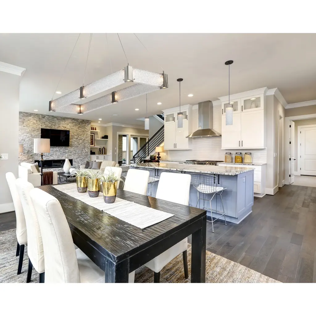 Parallel Rectangular Chandelier - 60-Classic Silver-Granite Glass - Smoke-Stainless Steel Cable-LED