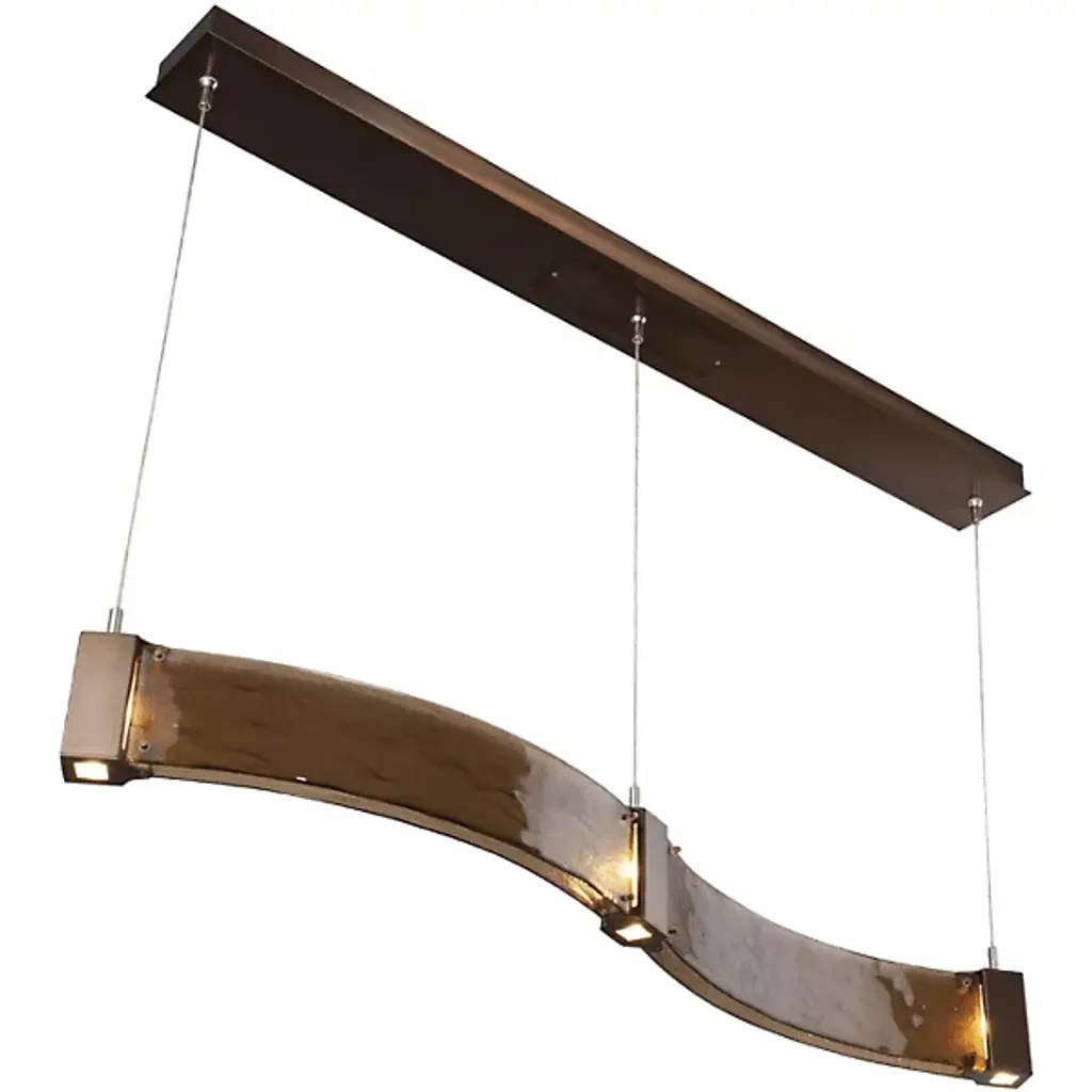 Parallel Led Gilded Brass Linear Pendant Ceiling Light In Smoke Granite, 2700k Led, Rectangular