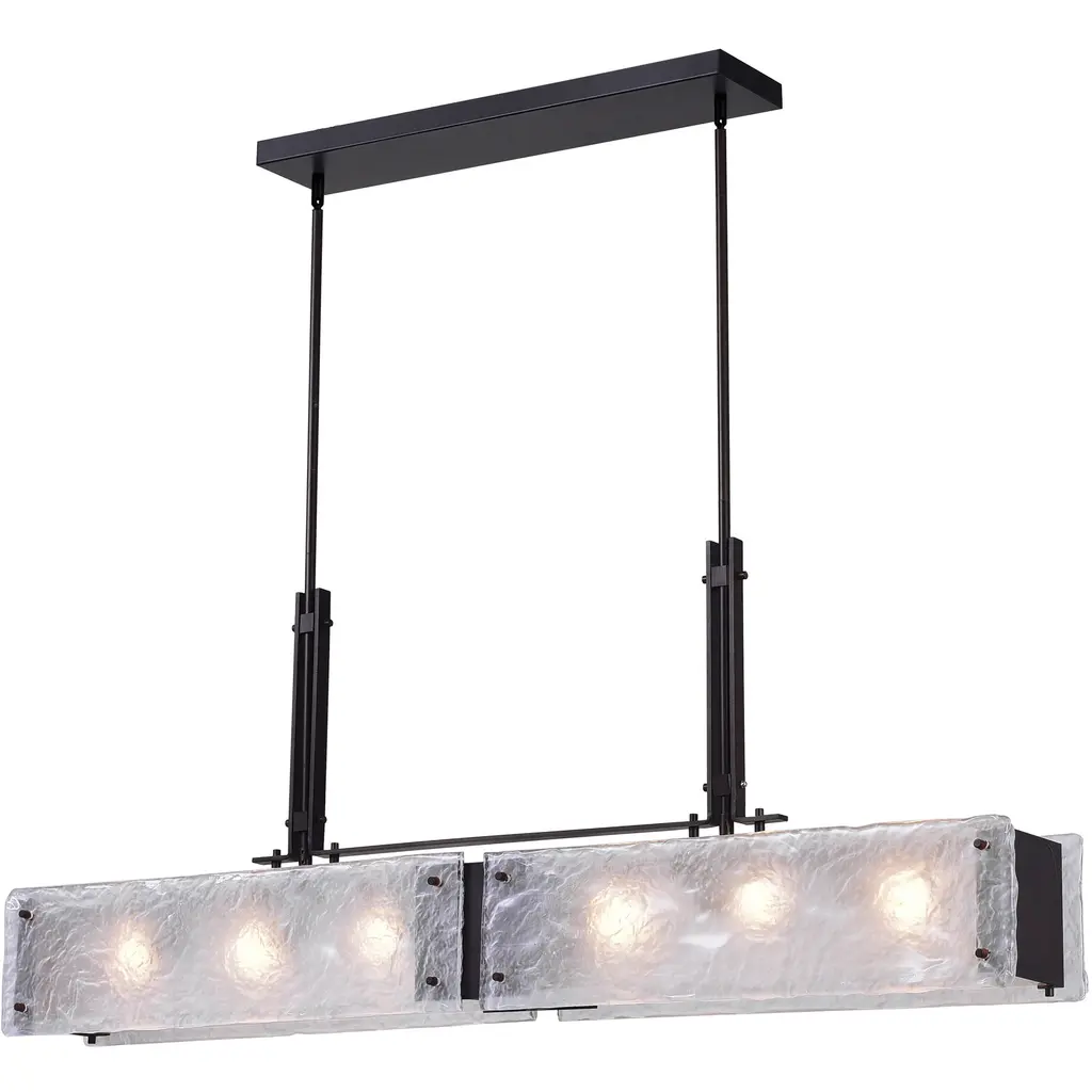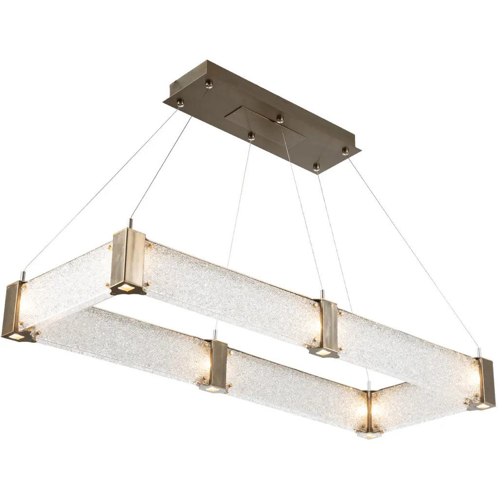 Parallel Rectangular Chandelier - 60-Novel Brass-Granite Glass - Smoke-Stainless Steel Cable-LED