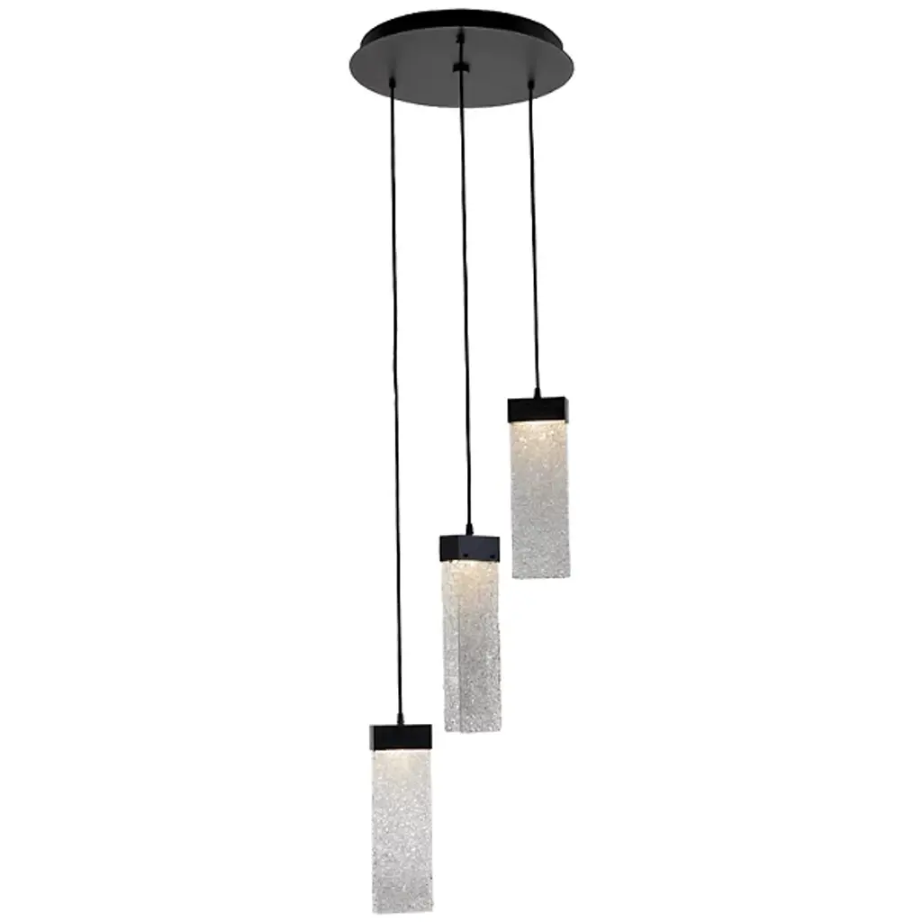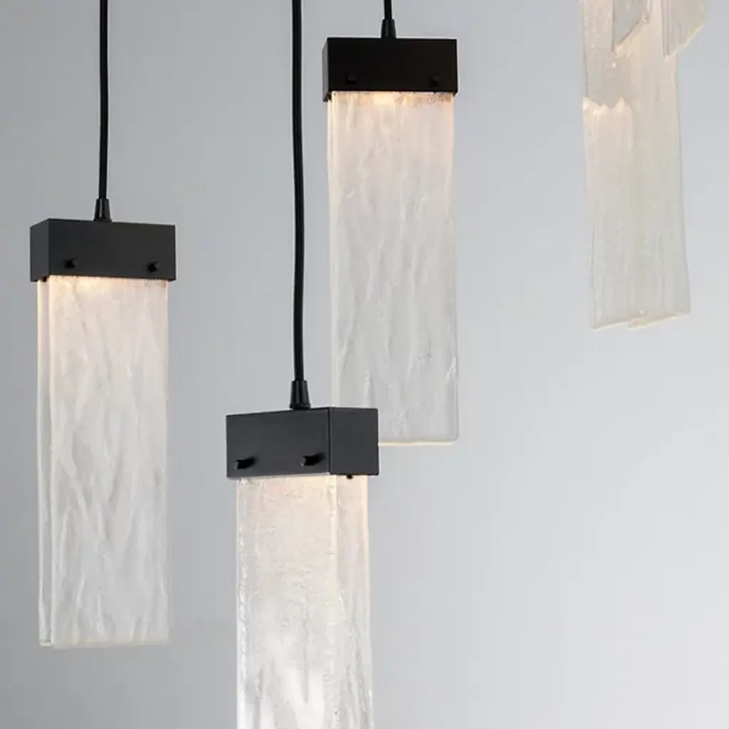 The Parallel Round LED Multi-Light Pendant by Hammerton Studio features a stunning array of mini-pendants, each with a pair of handcrafted, kiln-fused, textured glass panels that are capped by a finished metal insert. These metal inserts contain Cree brand integrated LEDs that, once lit, radiate through a Frosted Glass diffuser and the surrounding panels for a dazzling, multi-faceted display. Each luminaire is height adjustable, allowing you to build visually unique arrangements.