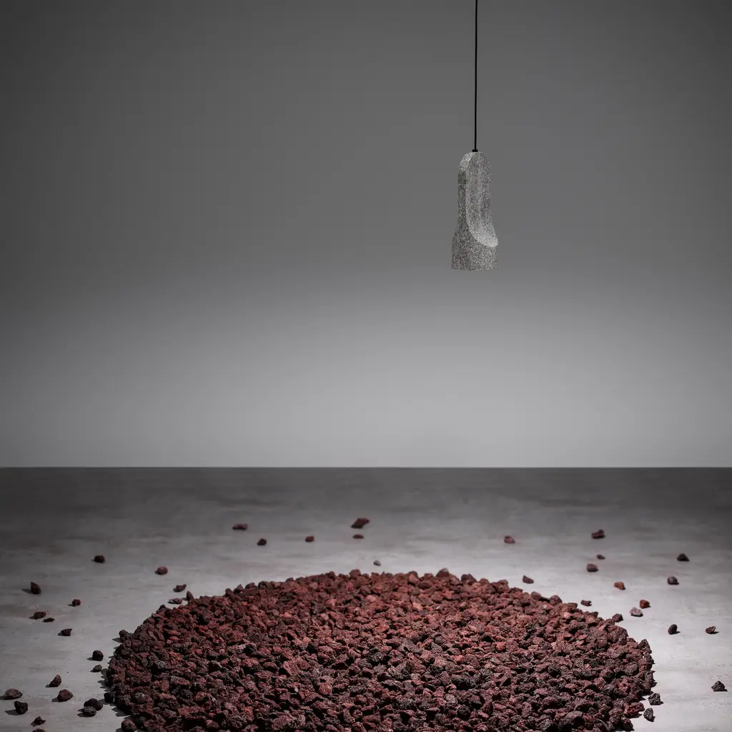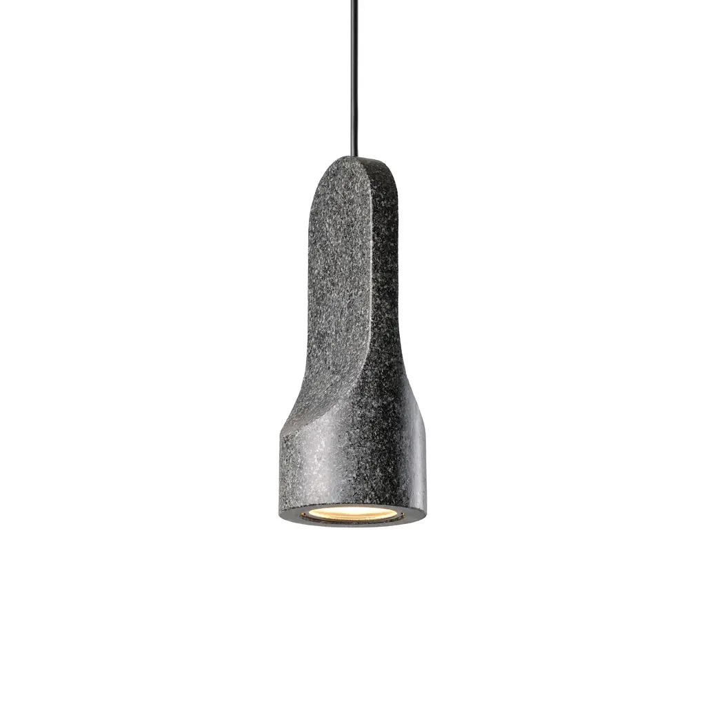 The Parga LED Pendant Light from a-emotional light provides an enchanting sculptural spirit with its mineral-like presence. Crafted from recycled granite, the low-profile canopy and slim cord suspend a scooped and flared housing which disperses a focused beam of light from its inner LED lamp. Highlights