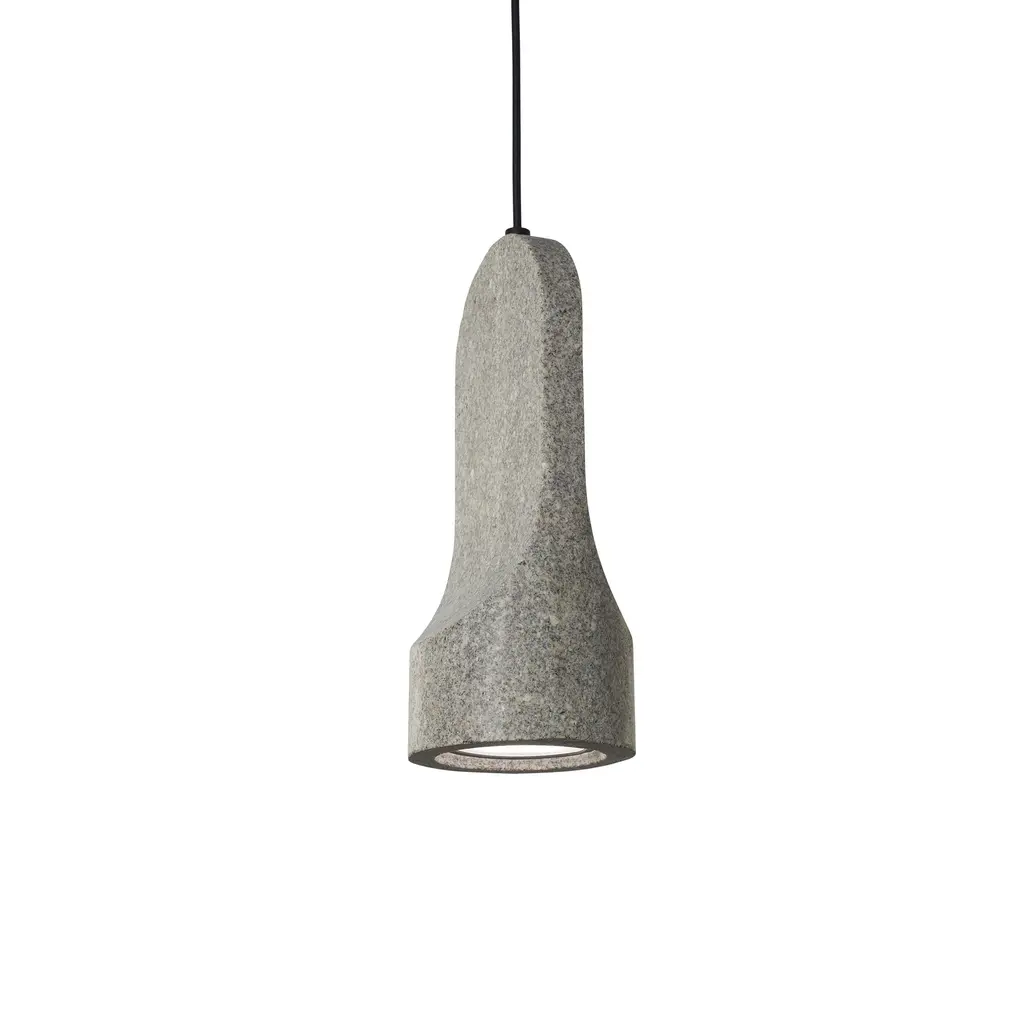 The Parga LED Pendant Light from a-emotional light provides an enchanting sculptural spirit with its mineral-like presence. Crafted from recycled granite, the low-profile canopy and slim cord suspend a scooped and flared housing which disperses a focused beam of light from its inner LED lamp. Highlights
