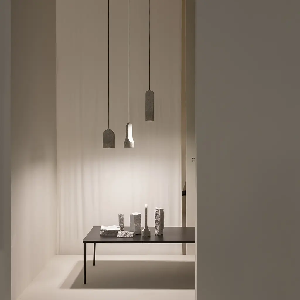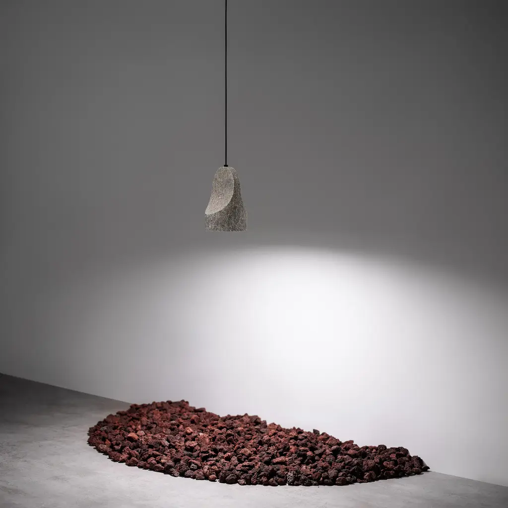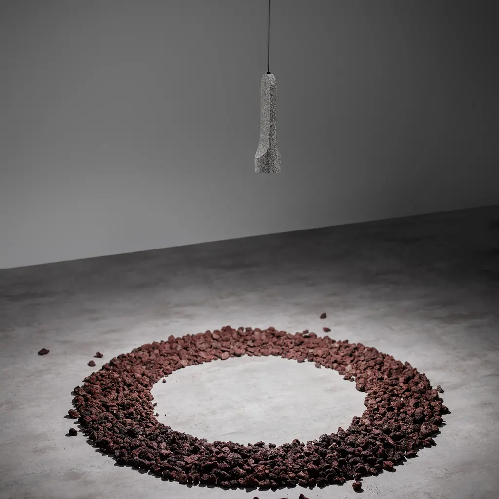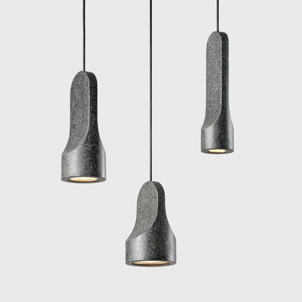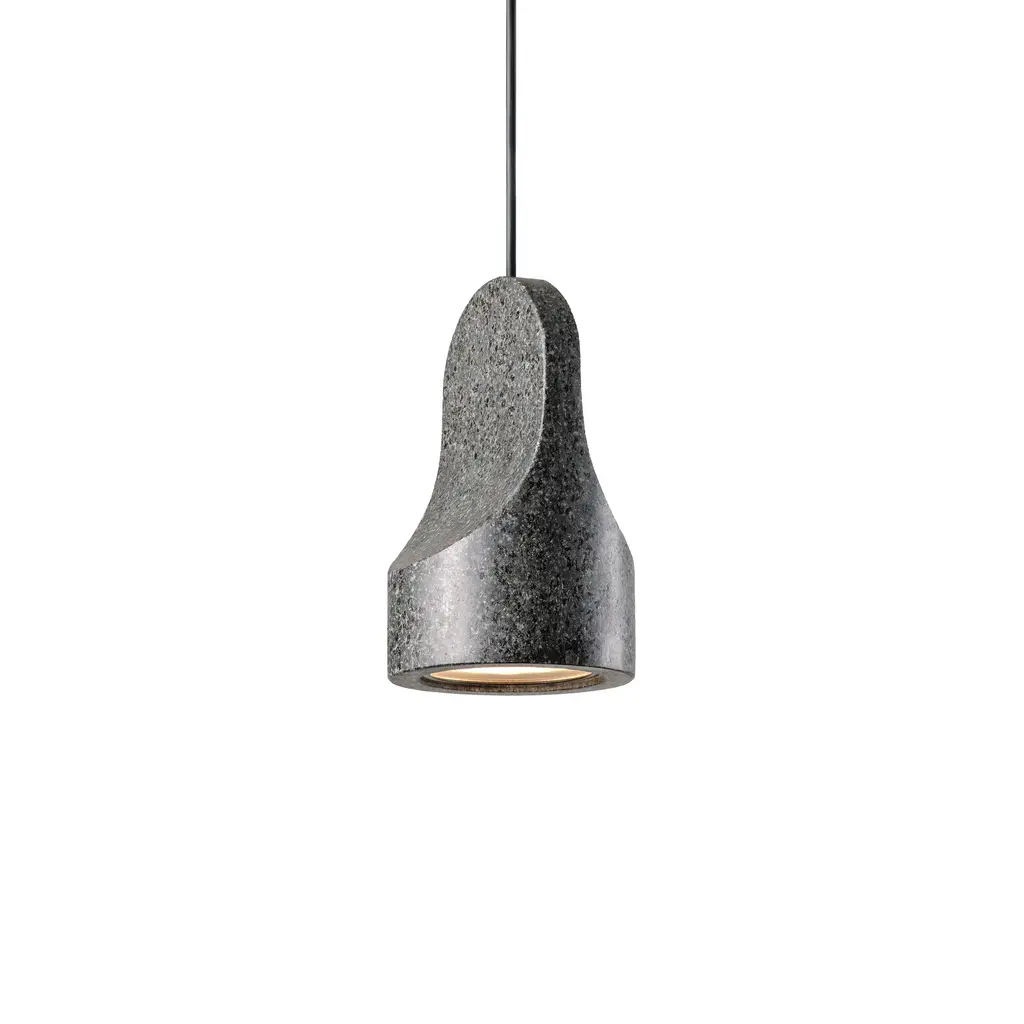 The Parga LED Pendant Light from a-emotional light provides an enchanting sculptural spirit with its mineral-like presence. Crafted from recycled granite, the low-profile canopy and slim cord suspend a scooped and flared housing which disperses a focused beam of light from its inner LED lamp. Highlights