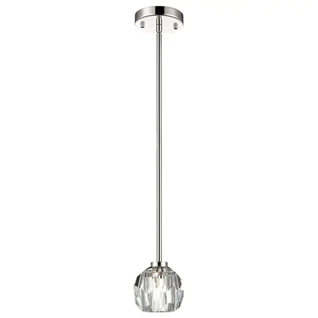The Parisian Mini Pendant by Zeev Lighting features an exquisite shade of clear crystal. This art deco-styled light fixture is secured by a disc-shaped ceiling canopy. A halogen suspends from an iron downrod, letting light dispense throughout your environment in an overhead fashion. Your mini pendant’s light is dimmable when paired with a standard dimmer.
