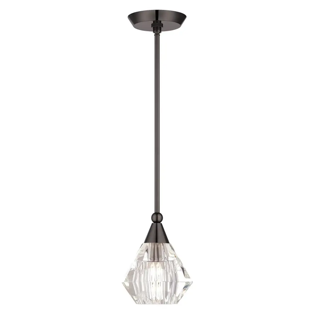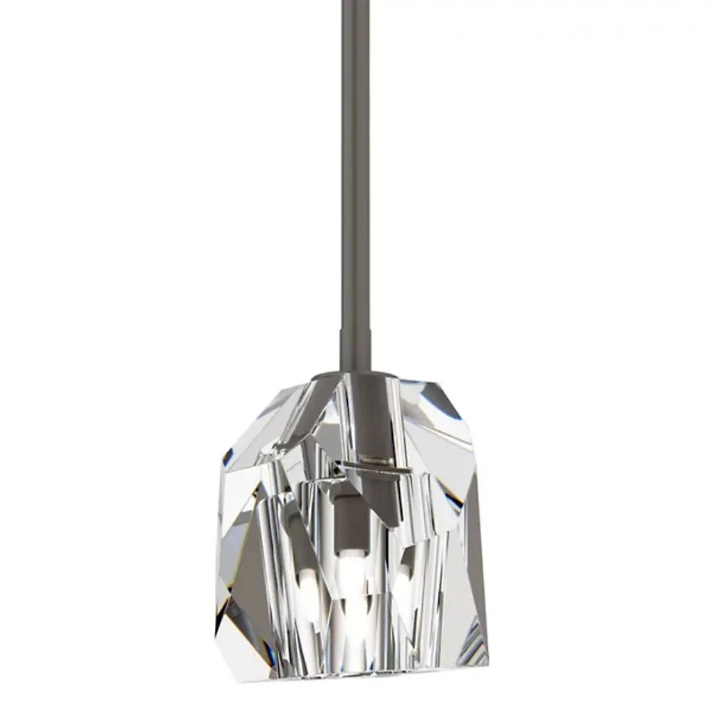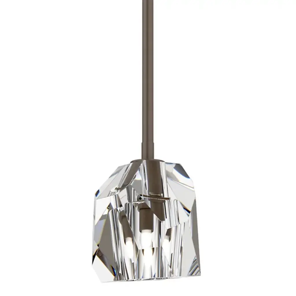 The Parisian Mini Pendant by Zeev Lighting features an exquisite shade of clear crystal. This art deco-styled light fixture is secured by a disc-shaped ceiling canopy. A halogen suspends from an iron downrod, letting light dispense throughout your environment in an overhead fashion. Your mini pendant’s light is dimmable when paired with a standard dimmer.