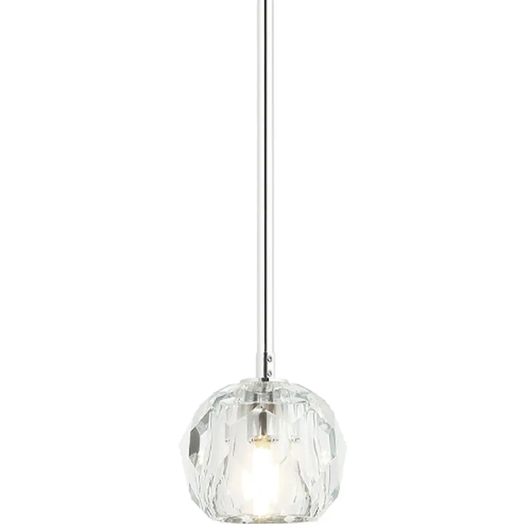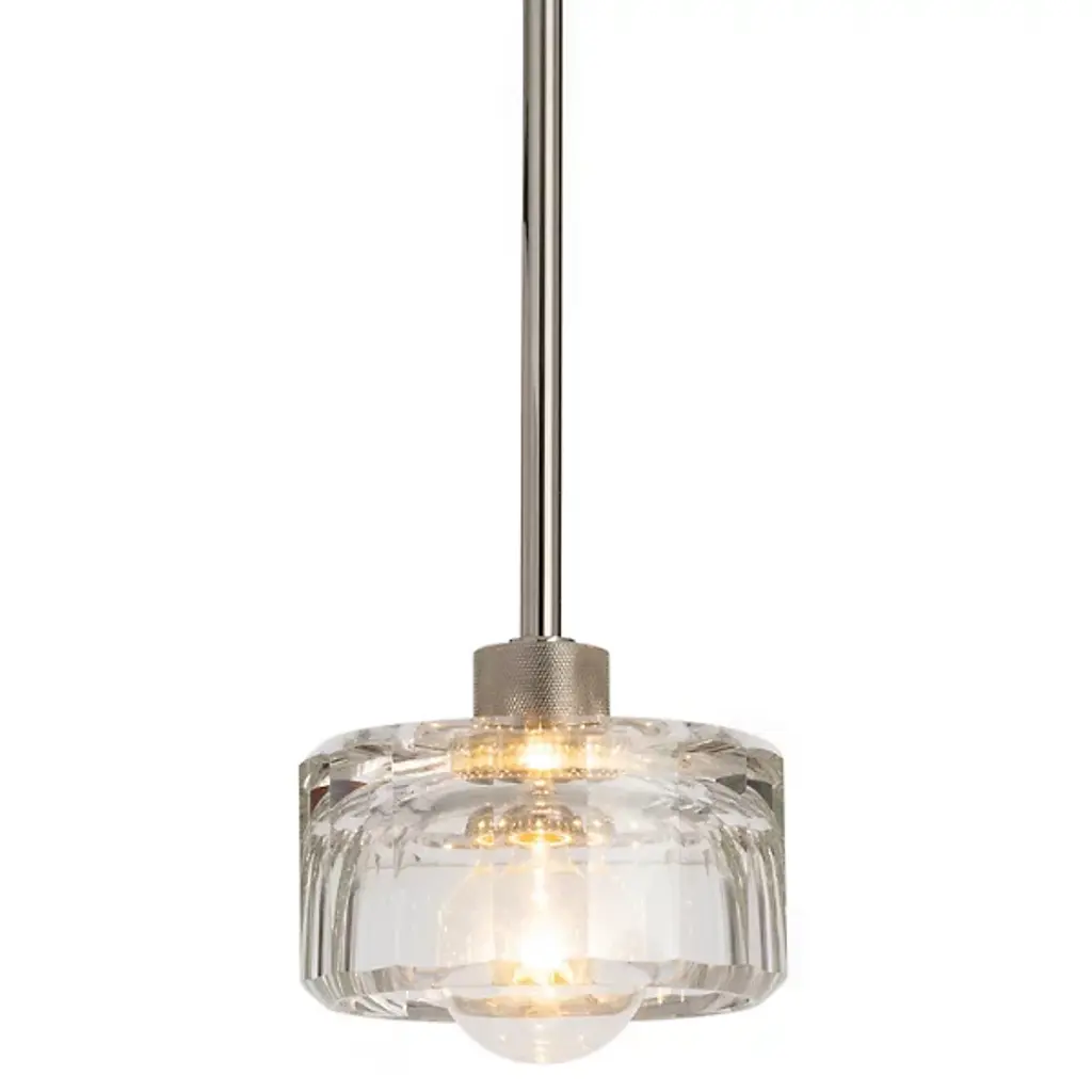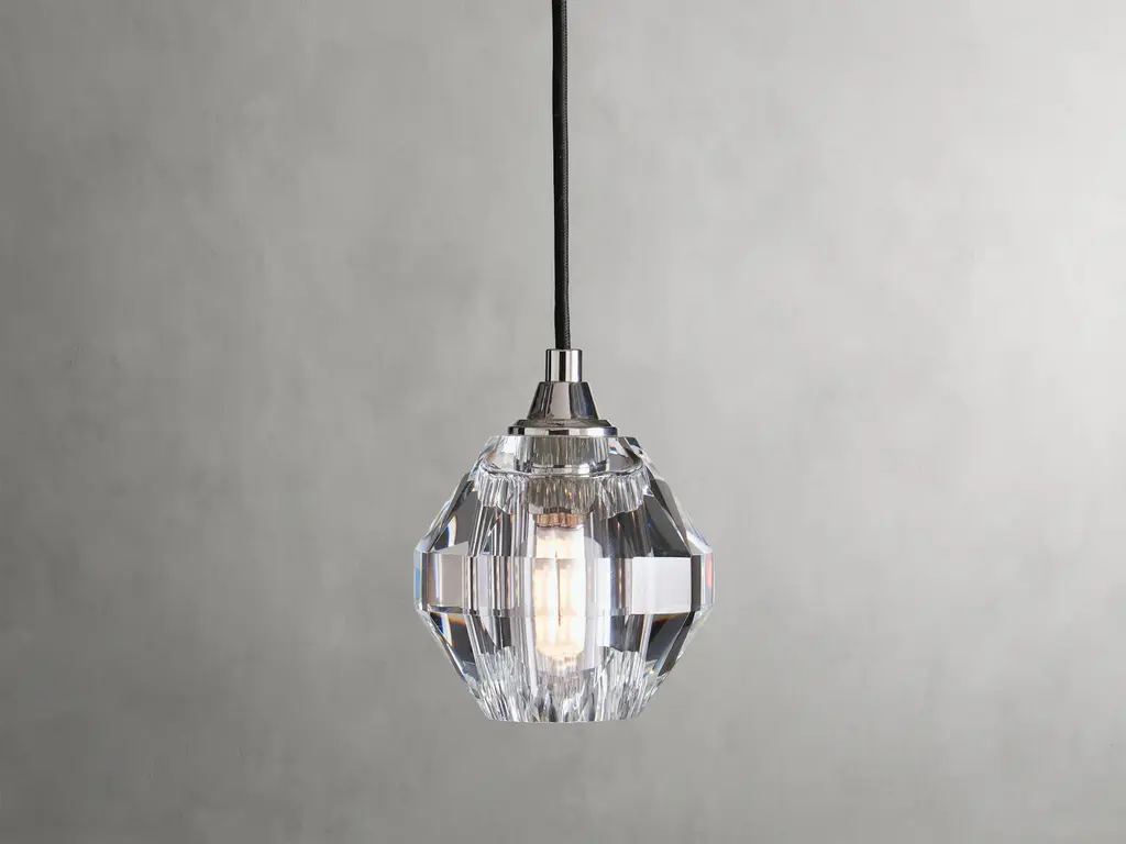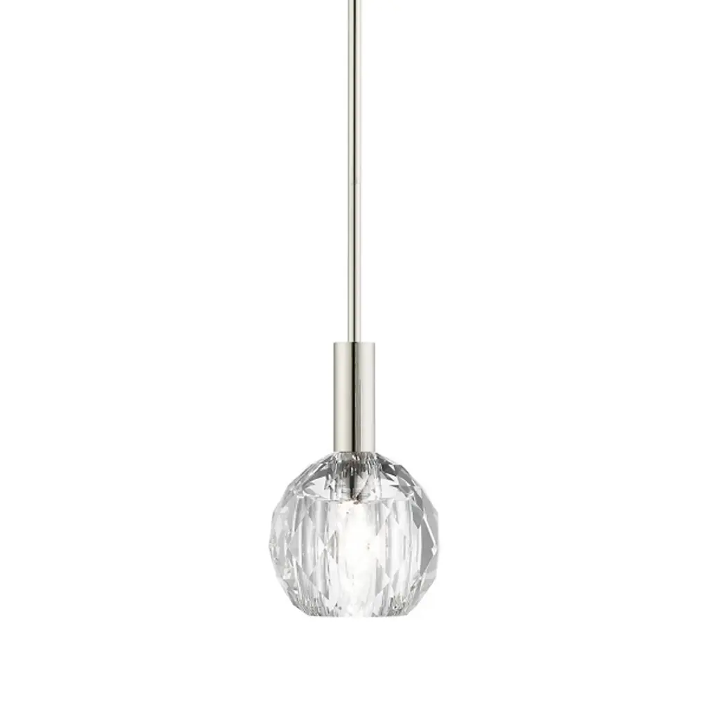 The Parisian Mini Pendant by Zeev Lighting features an exquisite shade of clear crystal. This art deco-styled light fixture is secured by a disc-shaped ceiling canopy. A halogen suspends from an iron downrod, letting light dispense throughout your environment in an overhead fashion. Your mini pendant’s light is dimmable when paired with a standard dimmer.