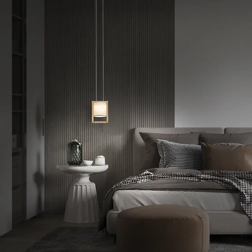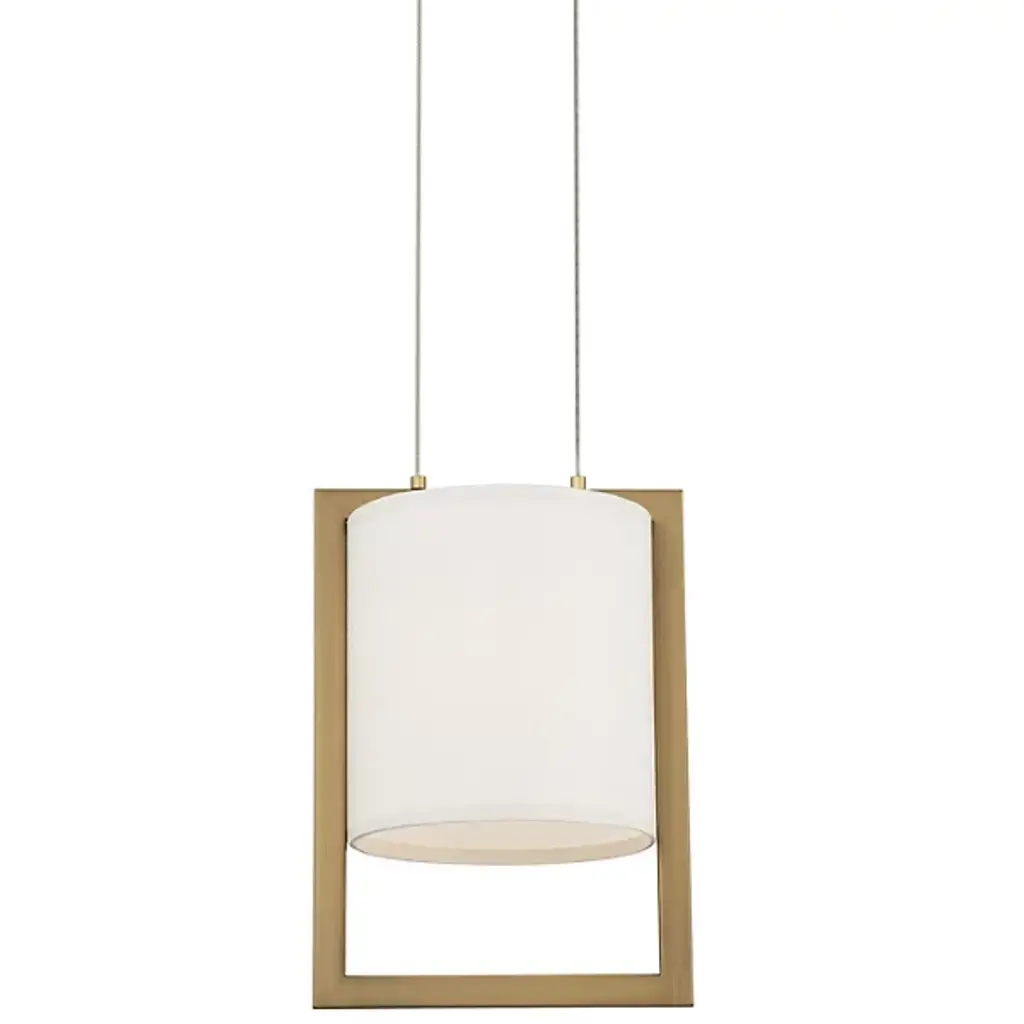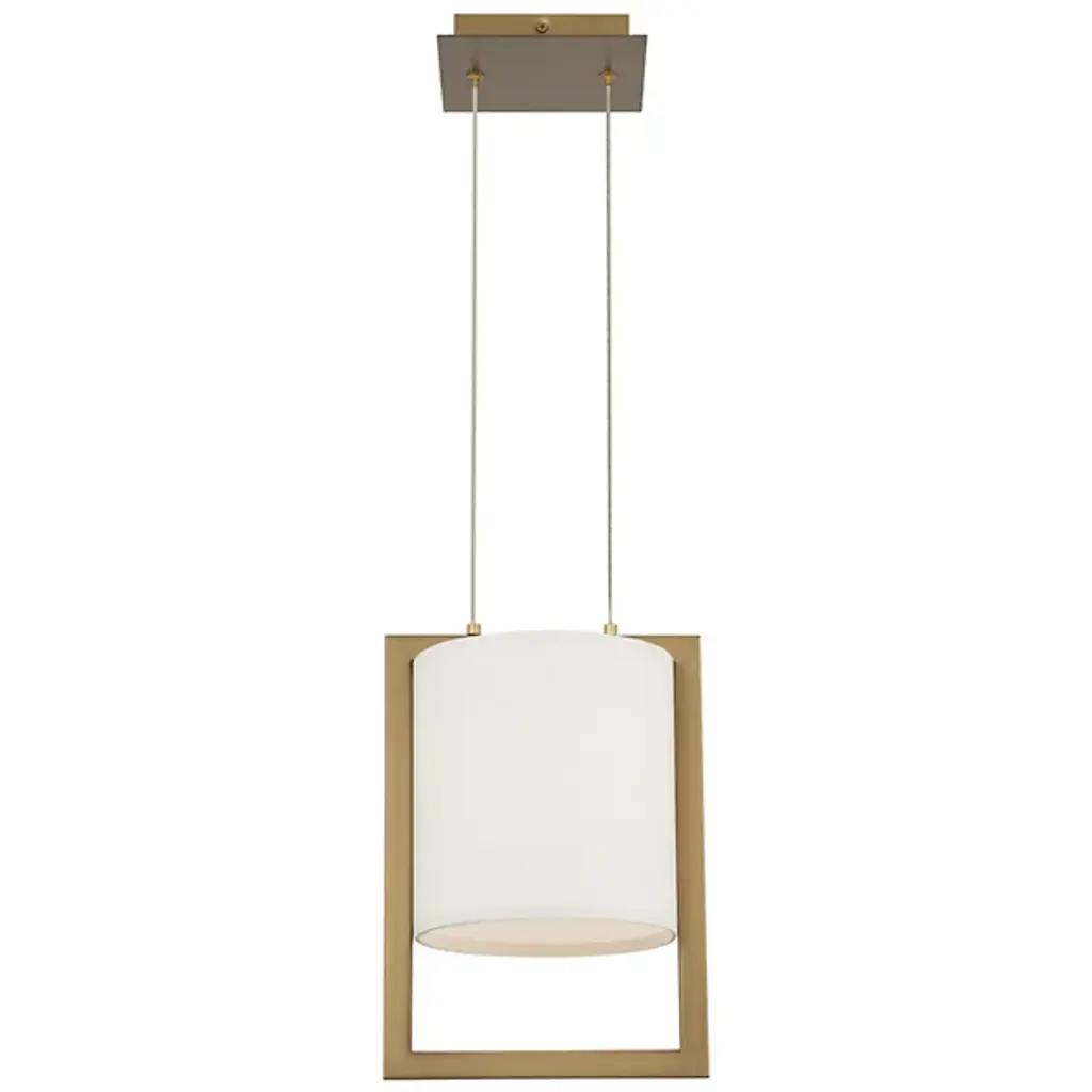 Add an expressive modern appeal to inside spaces with the open, sculptural character of the Park Avenue LED Pendant from dweLED. A stepped square canopy keeps the fixture in place, dispatching parallel cables down to strong, energy-friendly LED lamping set within a cylinder-shaped linen shade. A rectangular aluminum frame accompanies the shade, delivering a mix of mellow ambiance and focused downlight that dances off the smooth metal surface of the frame.