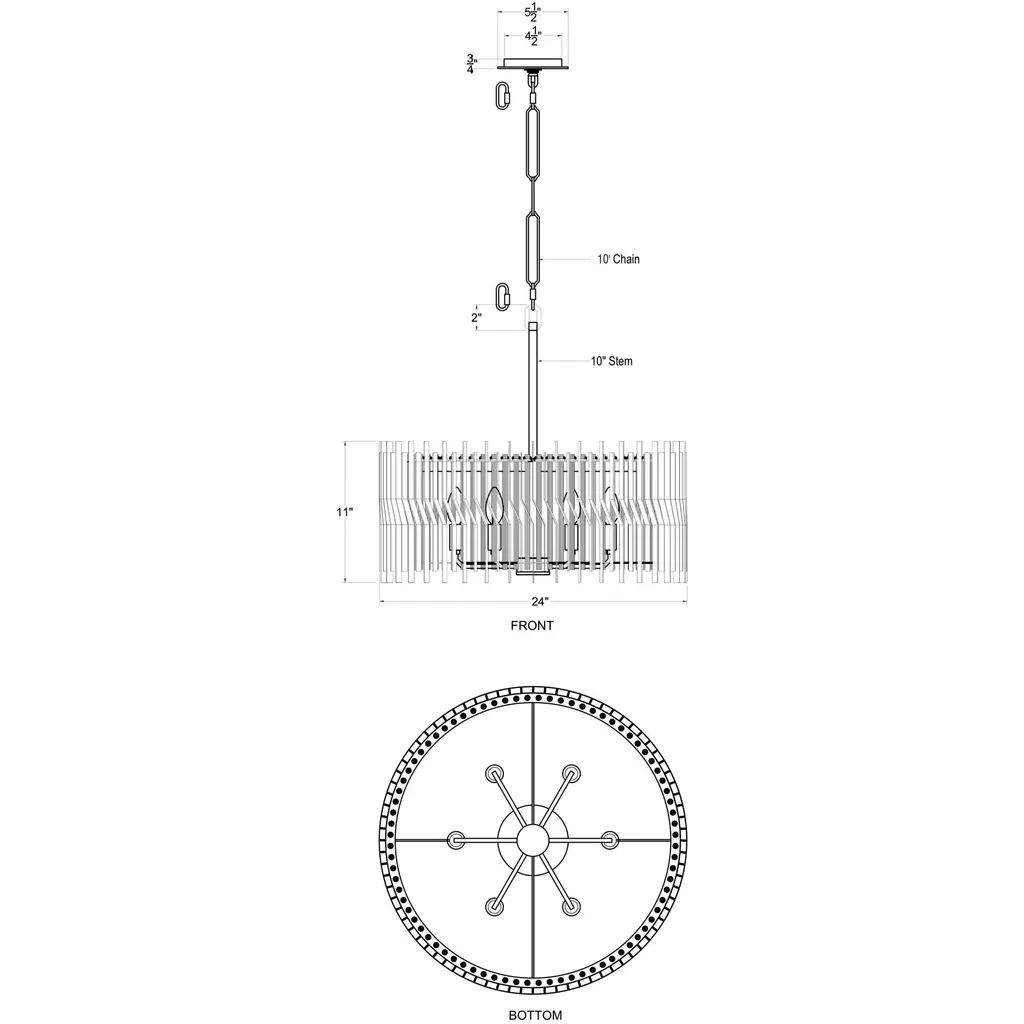 Park Row 6 Light 24 Inch Matte Black And French Gold Pendant Ceiling Light, Smithsonian Collaboration