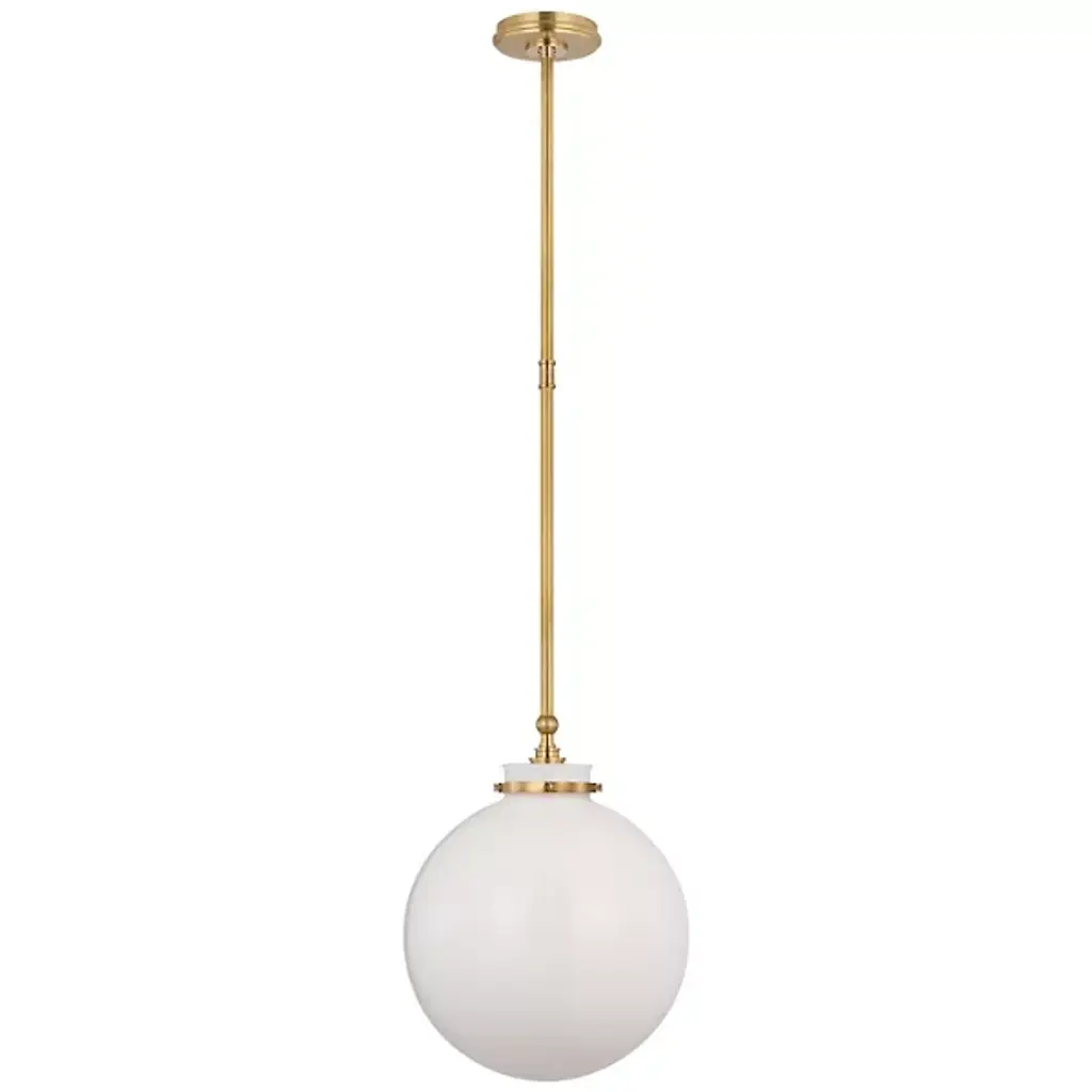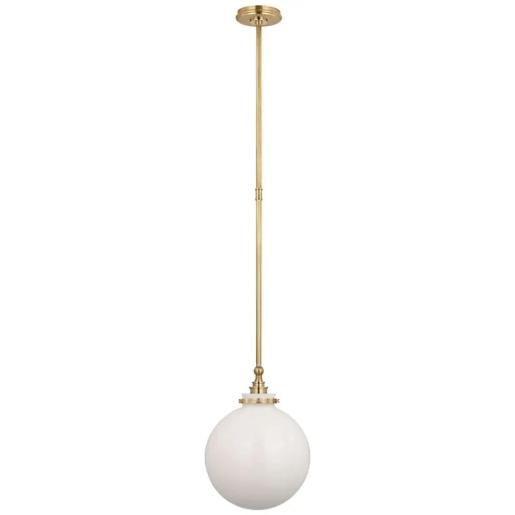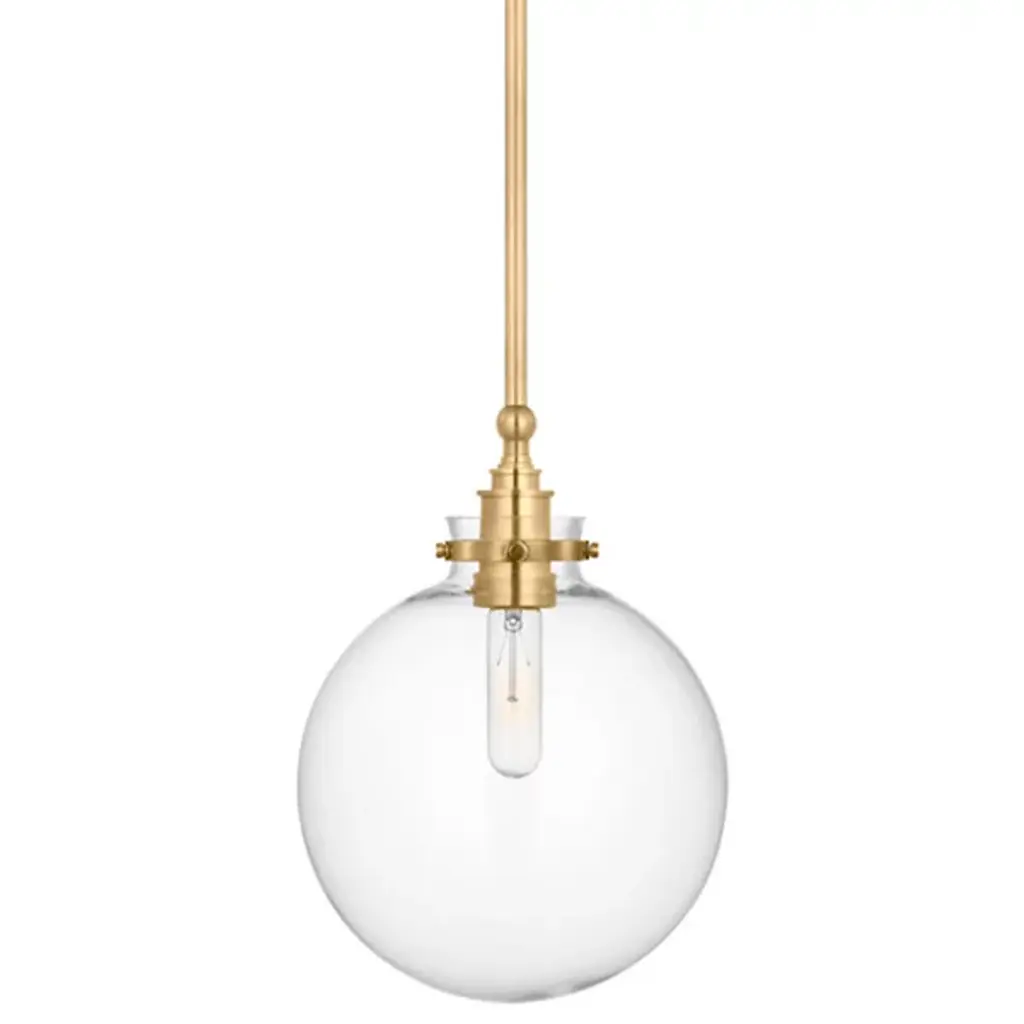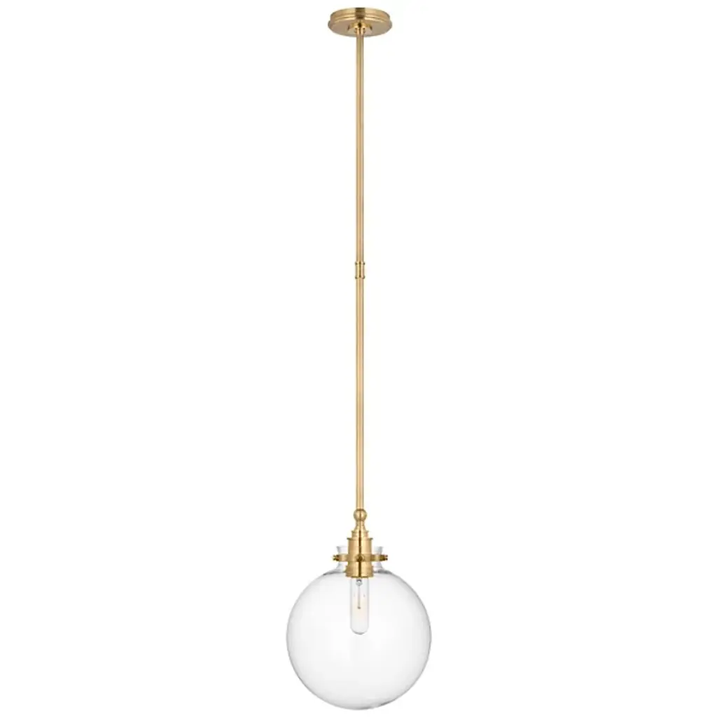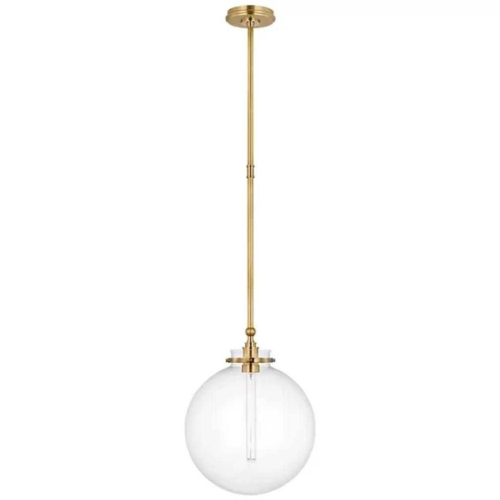The Parkington Pendant from Visual Comfort Signature seamlessly blends contemporary style with timeless elegance. Designed by Chapman & Myers, this fixture features a brass construction with a sleek glass shade, exuding sophistication in any space. Its minimalist design adds a modern touch while providing ample illumination. Whether in the hallway, bedroom, or living room, the Parkington Pendant offers a refined aesthetic that enhances your decor with its versatile and stylish presence.
