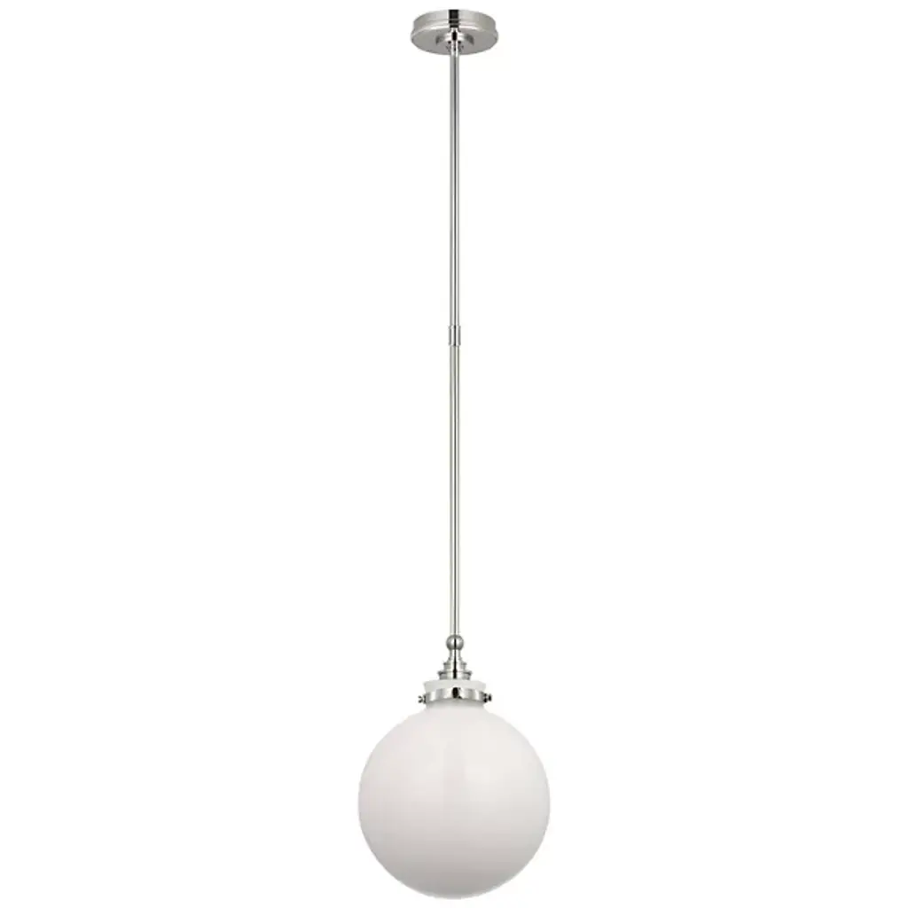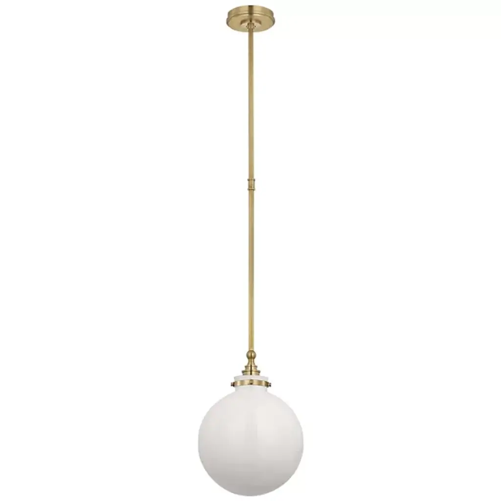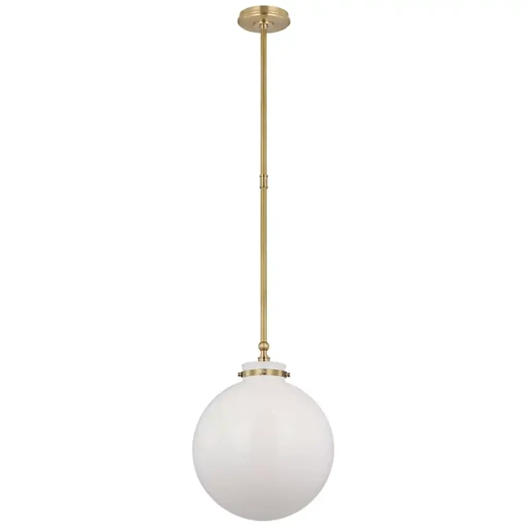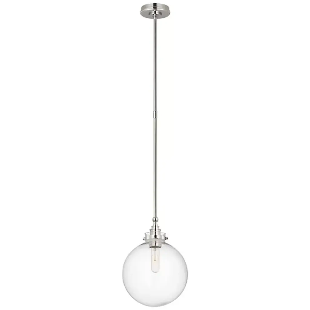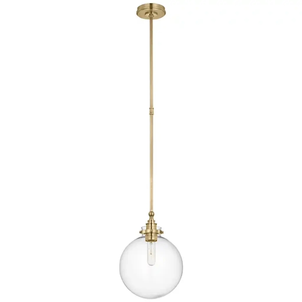 The Parkington Pendant from Visual Comfort Signature seamlessly blends contemporary style with timeless elegance. Designed by Chapman & Myers, this fixture features a brass construction with a sleek glass shade, exuding sophistication in any space. Its minimalist design adds a modern touch while providing ample illumination. Whether in the hallway, bedroom, or living room, the Parkington Pendant offers a refined aesthetic that enhances your decor with its versatile and stylish presence.