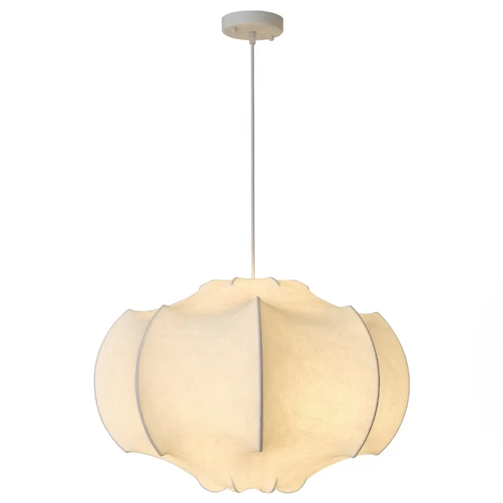 This 23.63-inch modern pendant light incorporates oriental aesthetics into contemporary lighting design. With a pure white surface and smooth, rounded lines, the lamp retains the elegant silhouette of the classic lantern while adapting to a variety of home styles through minimalist molding. Its biggest feature is the customizable color temperature - users can match the bulb according to their preference, warm yellow light to create a warm dining atmosphere in the dining room, and natural white light to create a bright and transparent reading environment in the study, a light to meet the needs of multiple scenes. The chandelier comes standard with a 39.4-inch pendant chain, which creates a visual focal point in a high-ceilinged living room. Whether the light is on or off, the lamp itself is an exquisite work of art in the air. When night falls, the light flows out of the lantern like moonlight, putting a poetic filter on the home space.