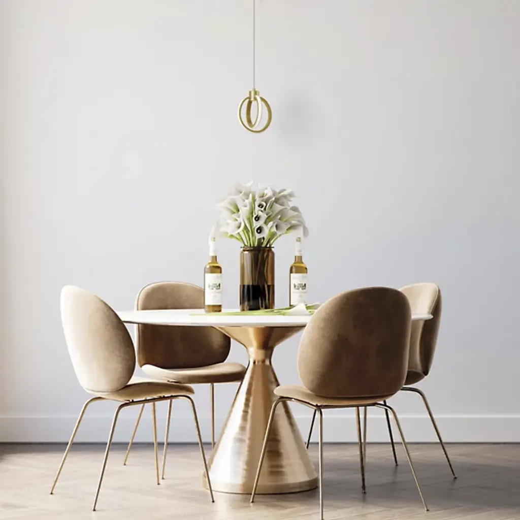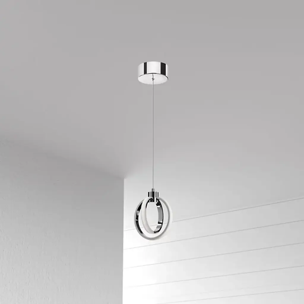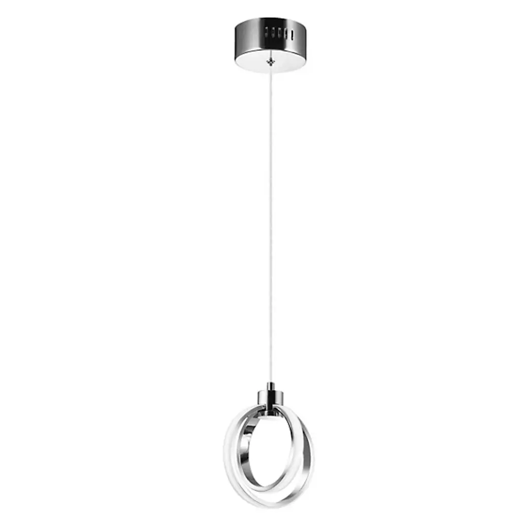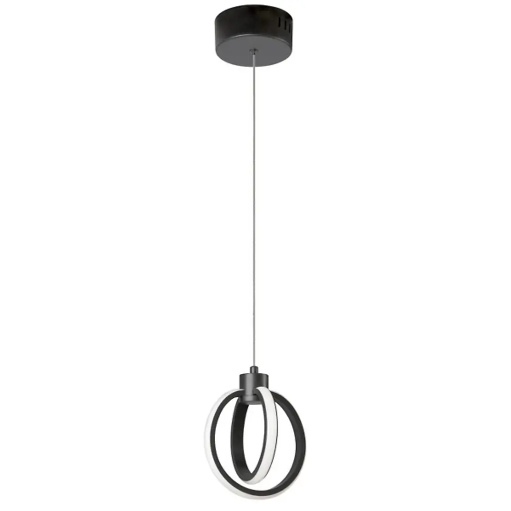 Energy-efficient and elegant. The Parson 14W LED Mini Pendant by Dainolite is supported by a simple round canopy and a single cord. A smooth top holds two openly styled rings that are set perpendicular to one another, creating a dynamic display as the edge of each circle illuminates. Bringing a bright and engaging touch to its environment, this contemporary mini pendant makes a statement as a single installation or lined up in a matching set to complete a room.