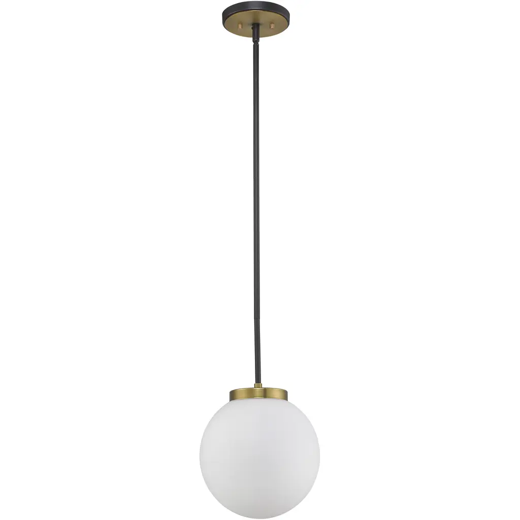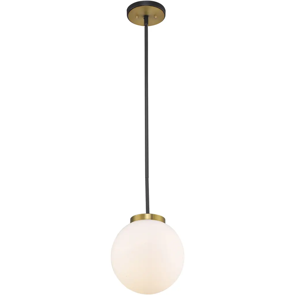 Clean, crisp lines and a slender design are the hallmarks of this one-light pendant for your home. It's fashioned with a matte black and olde brass finish and a round opal shade for the warm glow you're looking for. This elegant light is perfect for the dining room, foyer, bedroom, or home office.