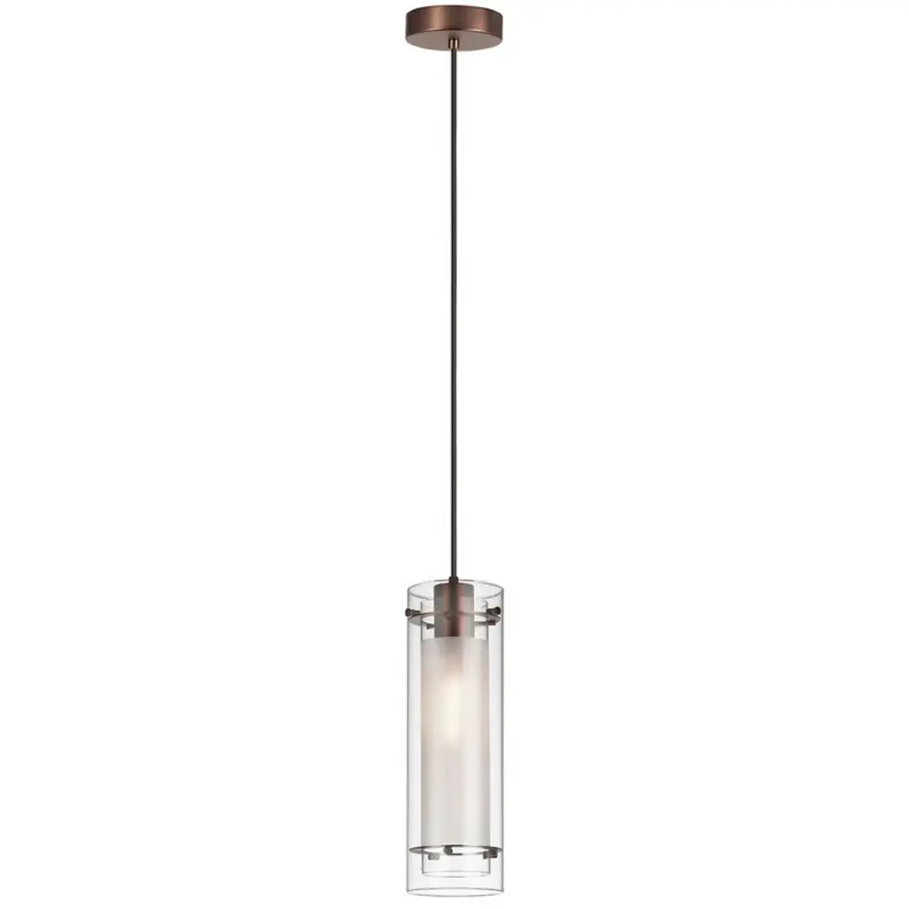 The simple and sleek look of the Parsons Studio Mini Pendant from Minka-Lavery makes it an easy addition to a range of modern spaces. It drops from the ceiling by a single metal stem, ending in a double-layered shade. A clear glass exterior surrounds an etched white glass interior for a dimensional effect that is enhanced when lit from its incandescent bulb. An angular metal arm tops the shade, offering a simple contemporary touch and completing its refined design.