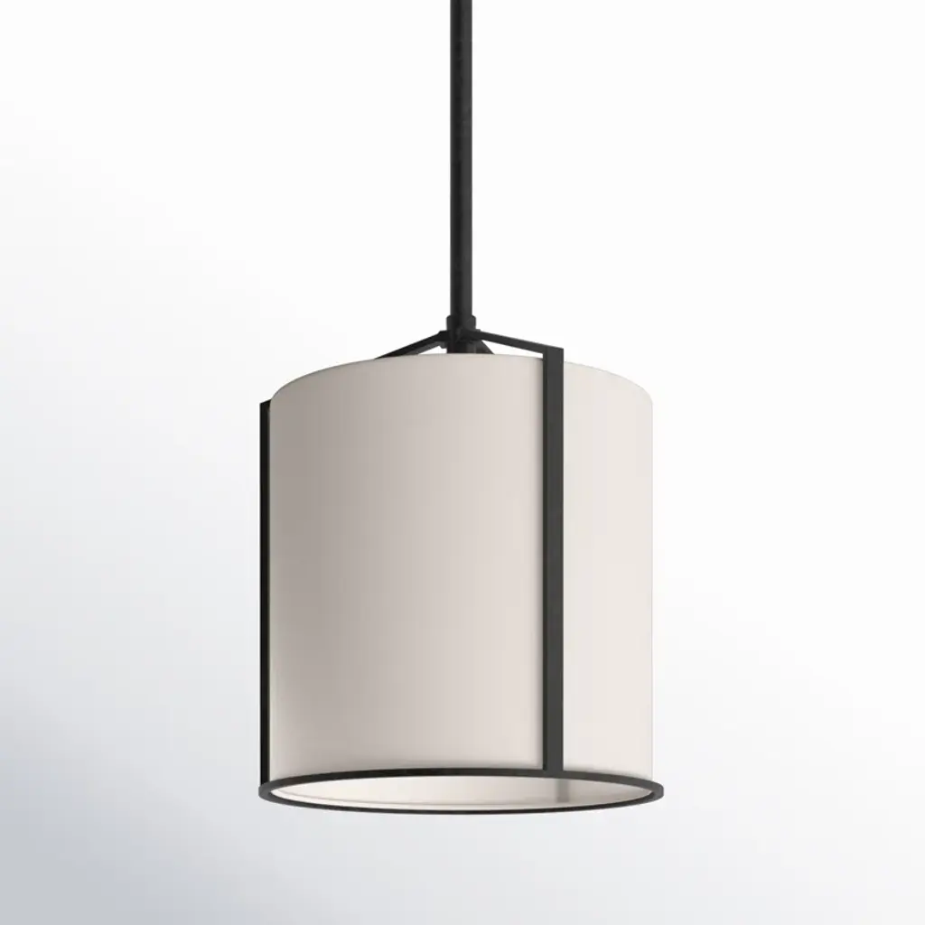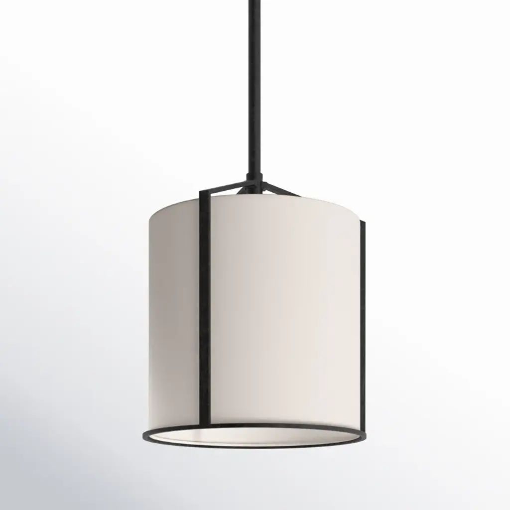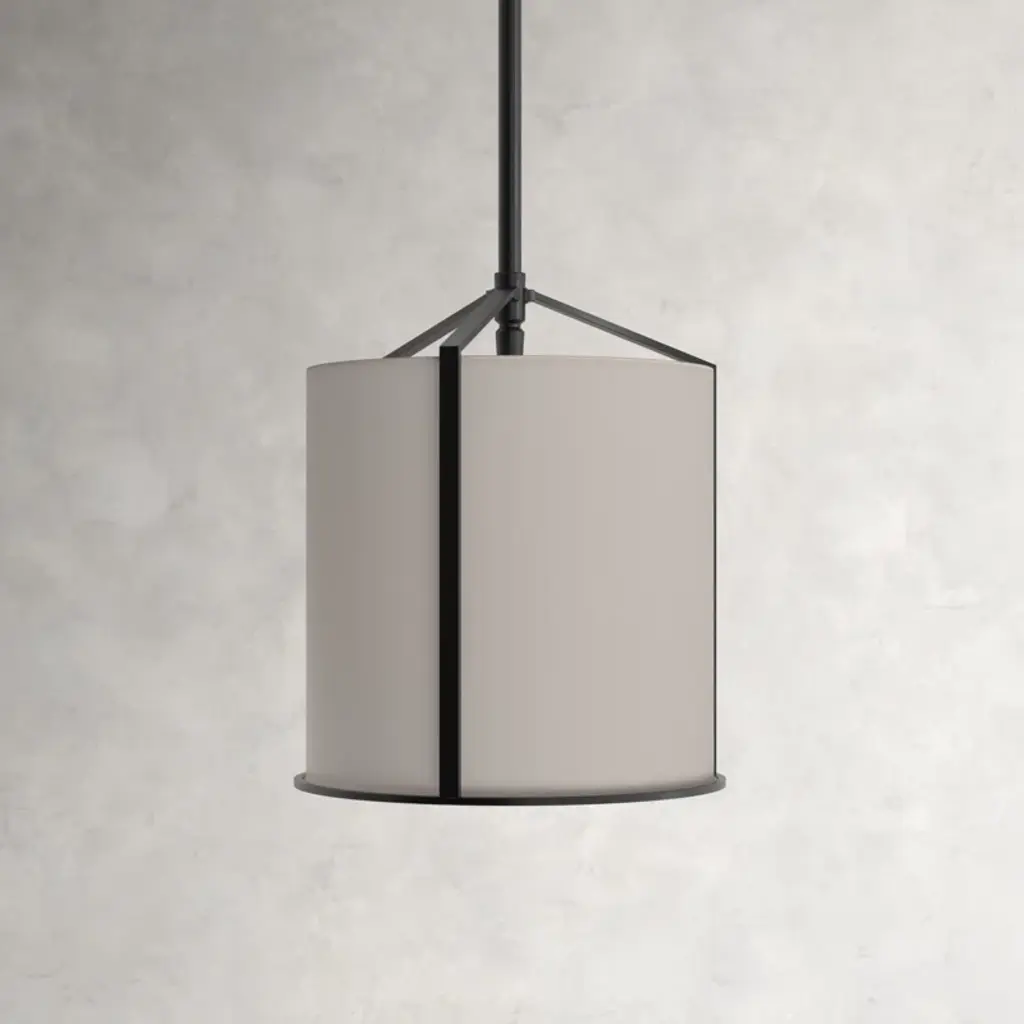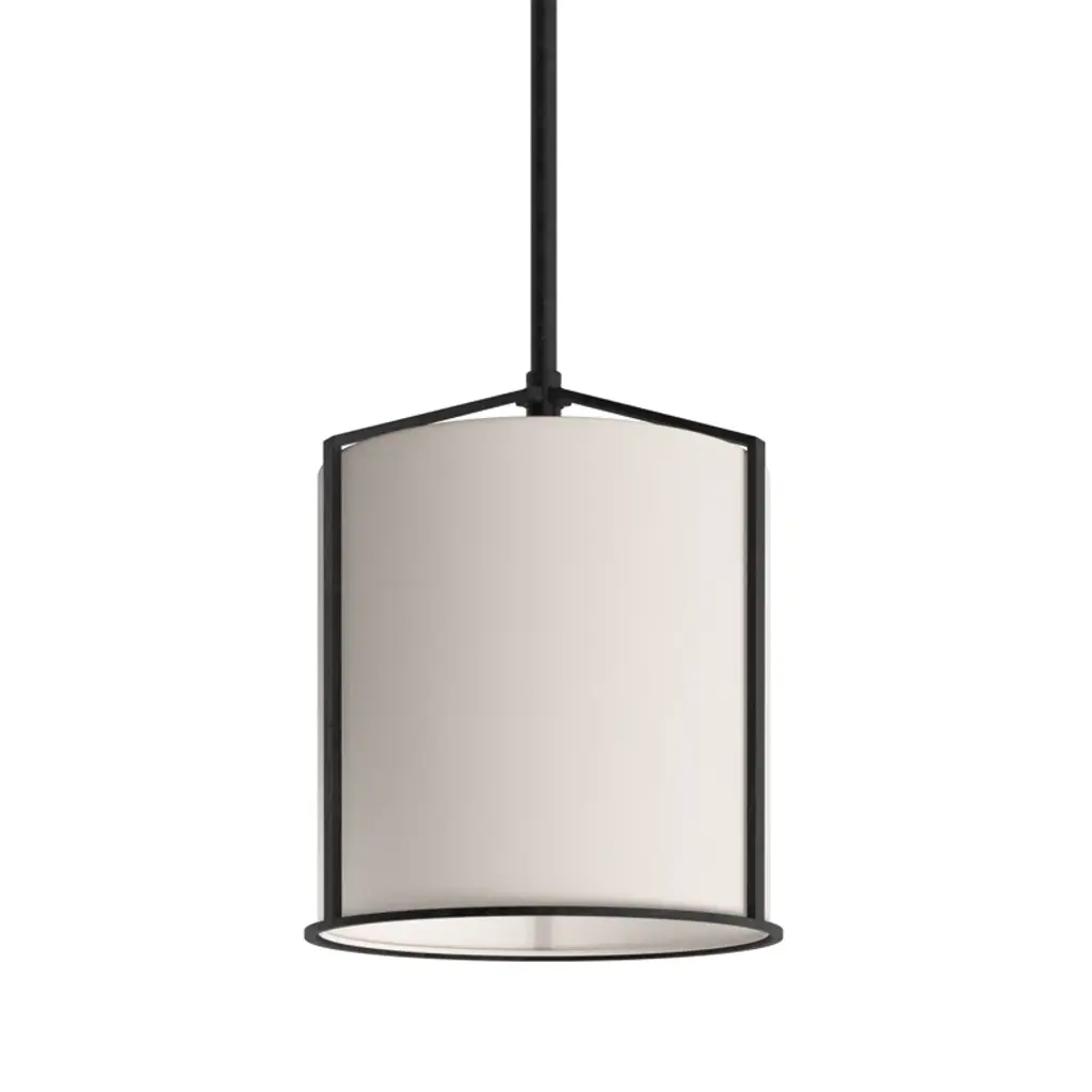 Showcasing a silhouette of a classic drum pendant, the contrast of hard metal with smooth silk makes for an elegant contrast. Mixing materials with contrasting finishes deliver striking simplicity and add a beautiful dimension.