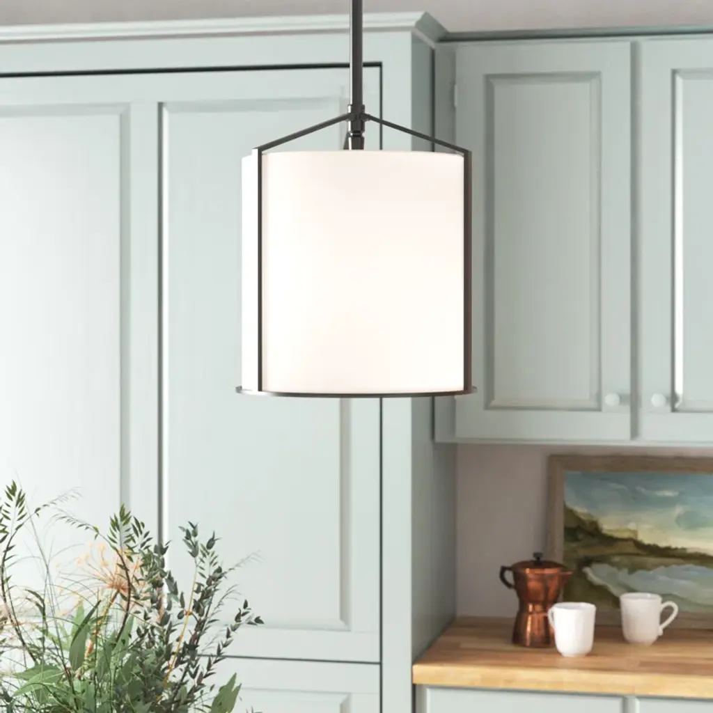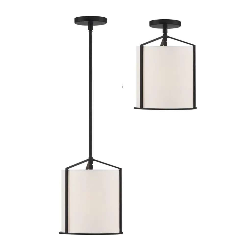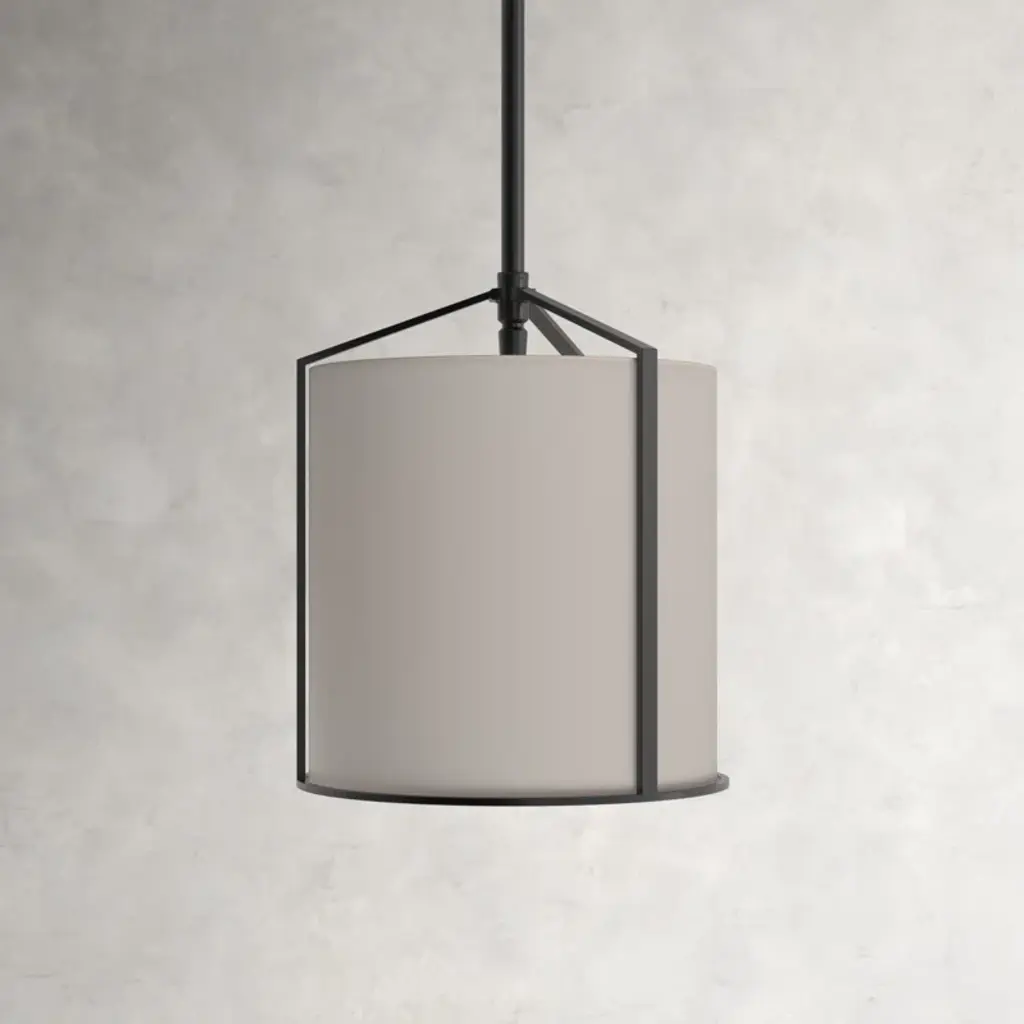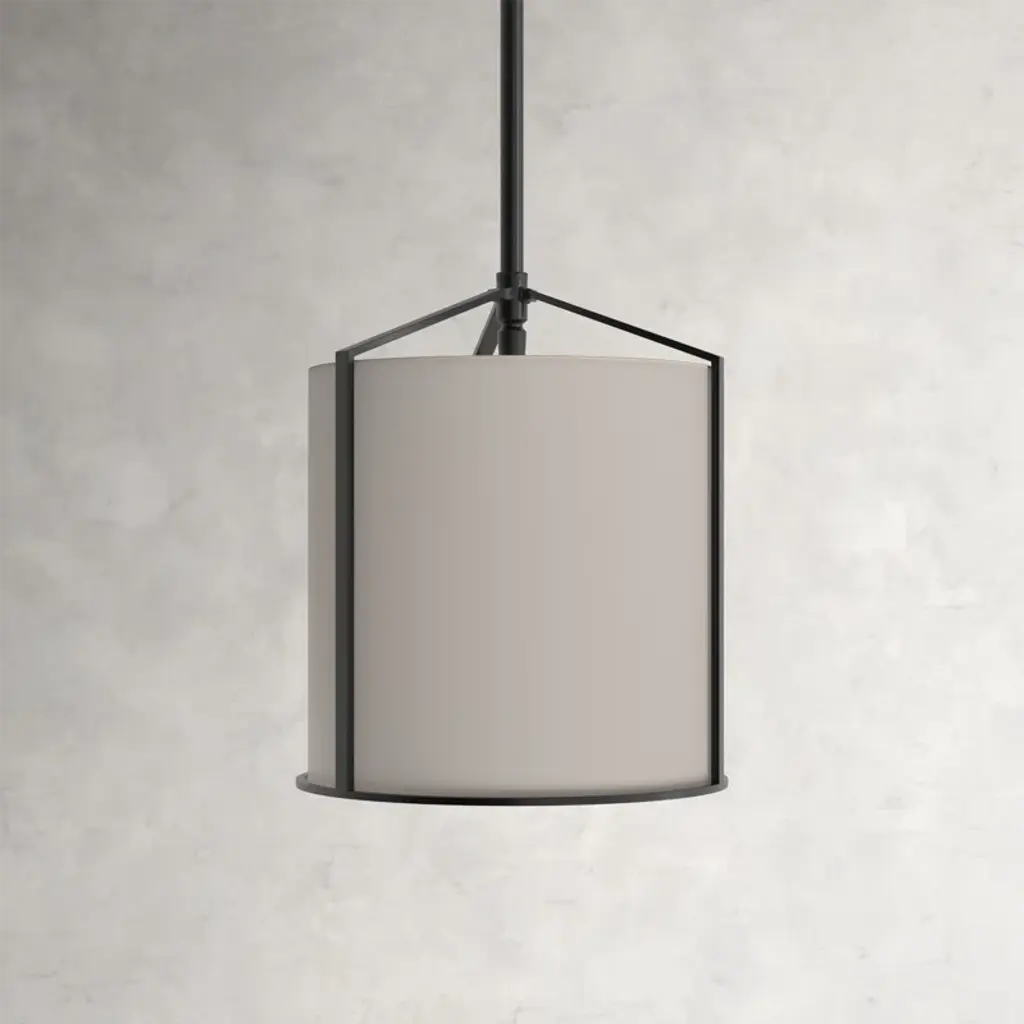 Showcasing a silhouette of a classic drum pendant, the contrast of hard metal with smooth silk makes for an elegant contrast. Mixing materials with contrasting finishes deliver striking simplicity and add a beautiful dimension.