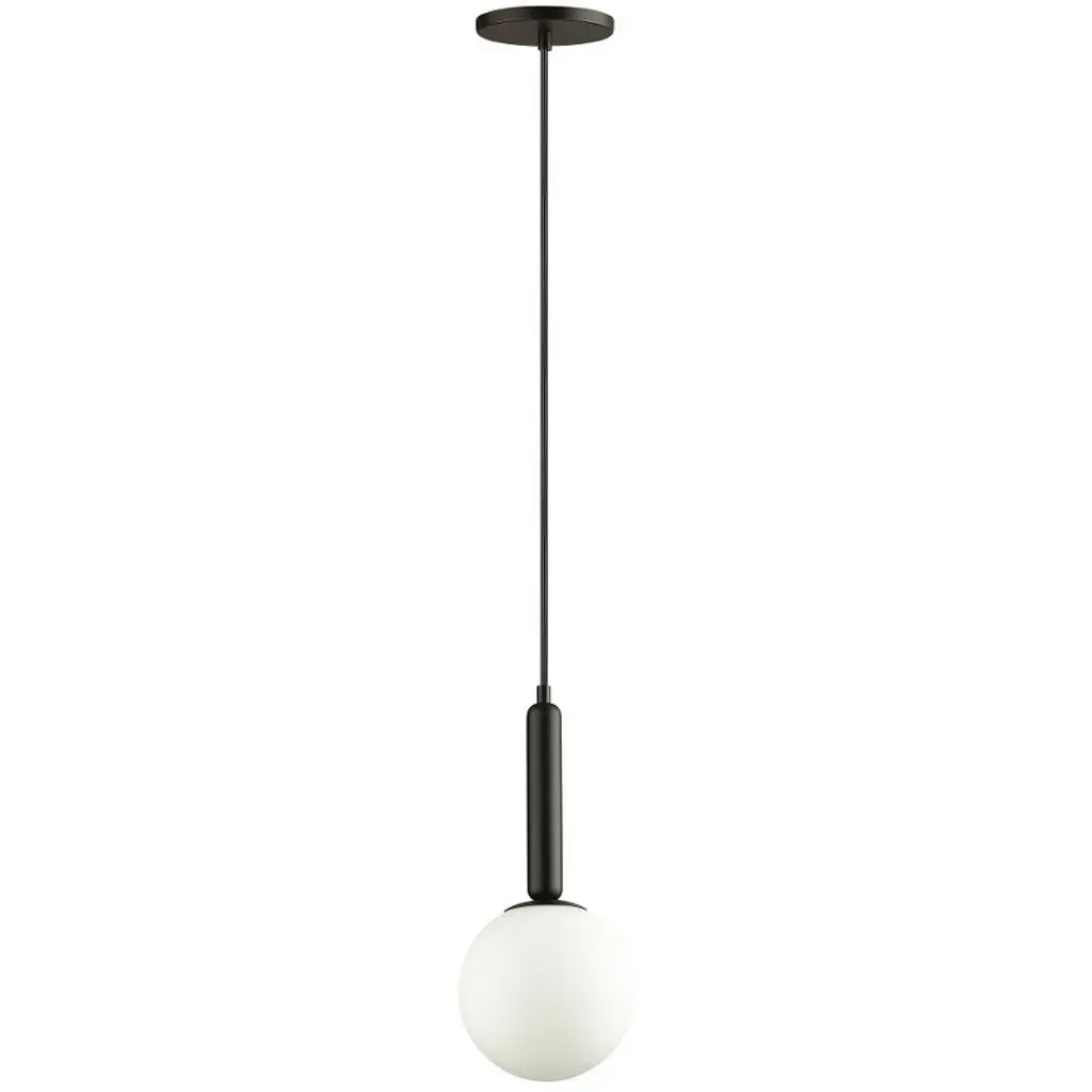 This pendant's opal glass globe shade hangs from a gleaming metallic rod, which in term descends from a cement cylinder, for an unexpected but inviting juxtaposition of materials. Because the pendant is damp rated, you can place it in a bathroom as well as above a dining table, in a foyer, or just about anywhere else in your home.