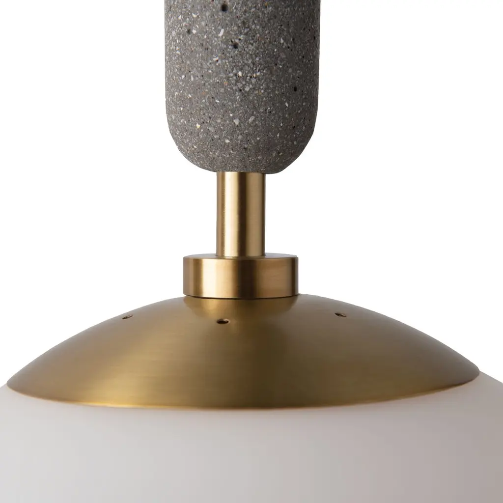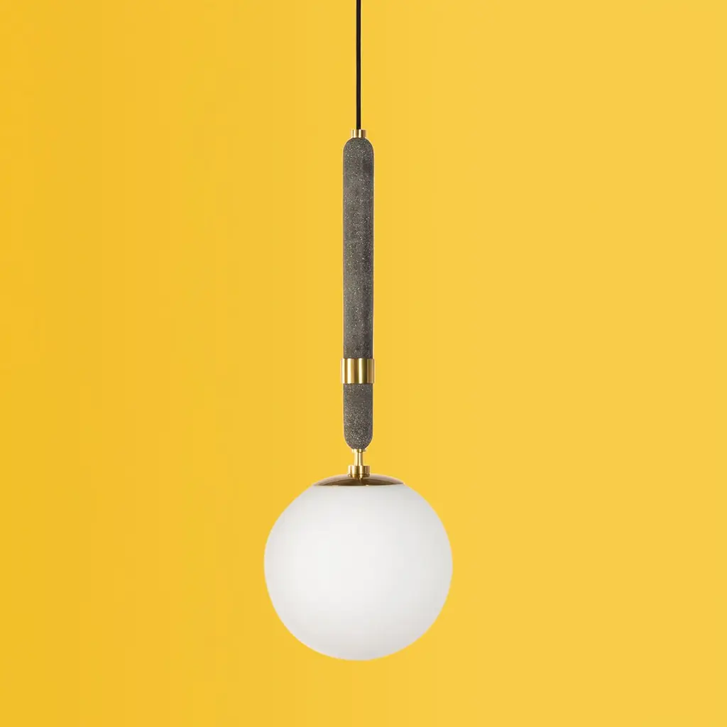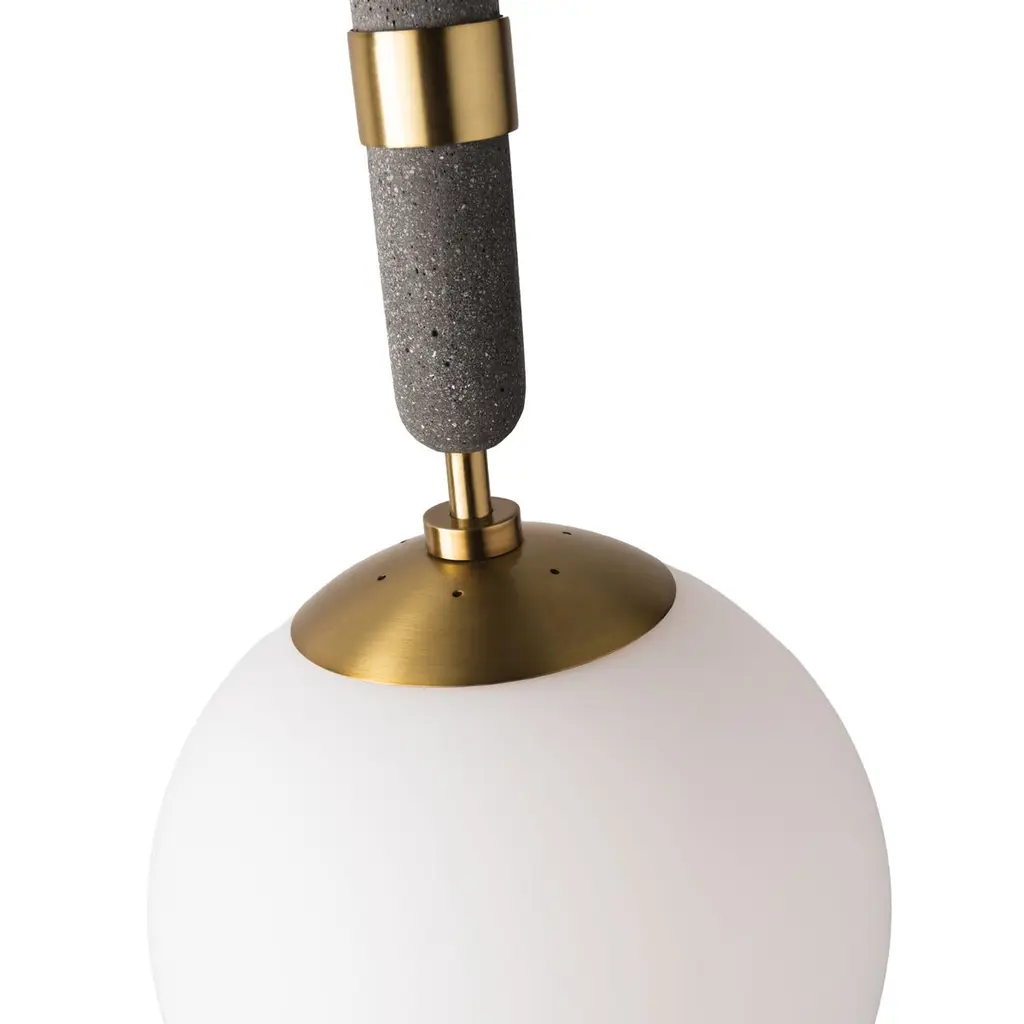 This pendant's opal glass globe shade hangs from a gleaming metallic rod, which in term descends from a cement cylinder, for an unexpected but inviting juxtaposition of materials. Because the pendant is damp rated, you can place it in a bathroom as well as above a dining table, in a foyer, or just about anywhere else in your home.
