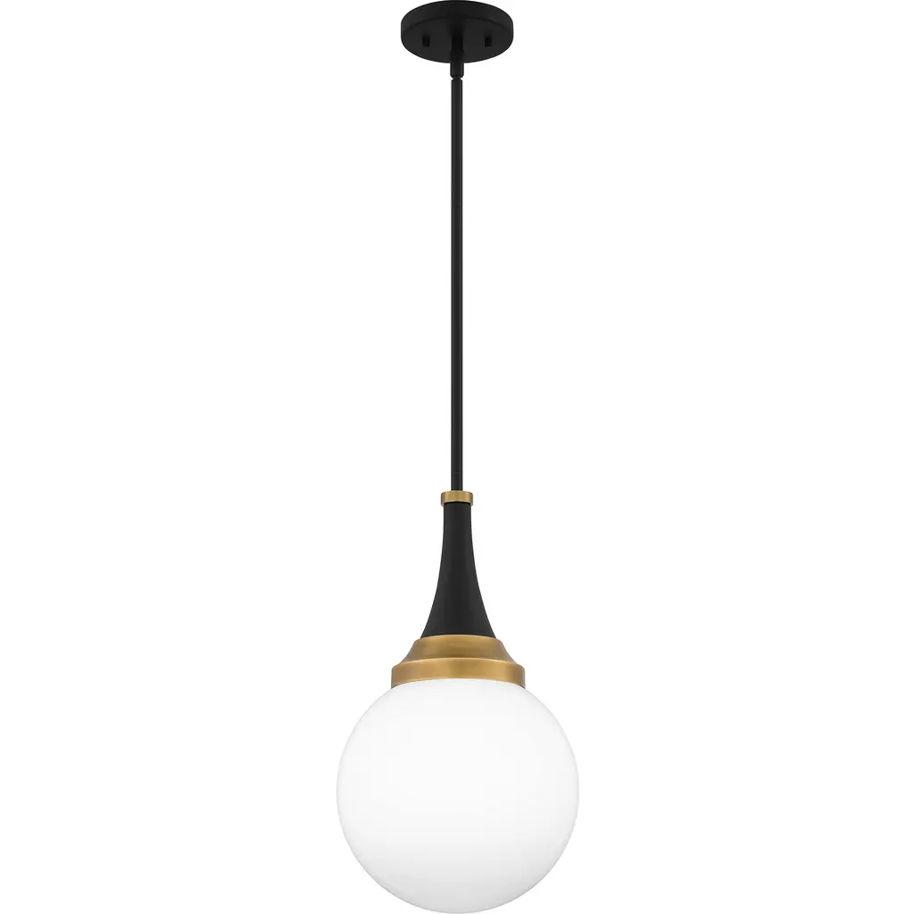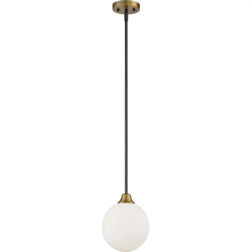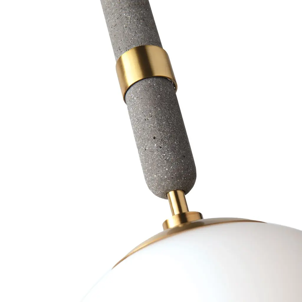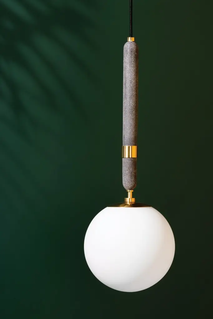 This pendant's opal glass globe shade hangs from a gleaming metallic rod, which in term descends from a cement cylinder, for an unexpected but inviting juxtaposition of materials. Because the pendant is damp rated, you can place it in a bathroom as well as above a dining table, in a foyer, or just about anywhere else in your home.