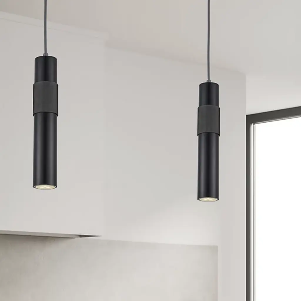 Focused lighting with an eye-catching touch of industrial texture. The Passwell Mini Pendant by Dainolite is a slender spotlight, with a focused bulb directing a bright beam of downlight onto a tabletop or kitchen island counter. The otherwise smooth metal cylinder is adorned with a raised, knurled portion. This detail gives the design an unexpected mechanical aesthetic while still ensuring a generally sophisticated look ideal for urban loft, modern farmhouse and other modern interiors.