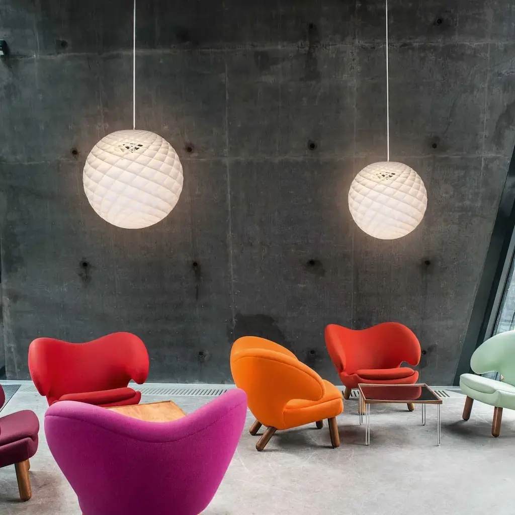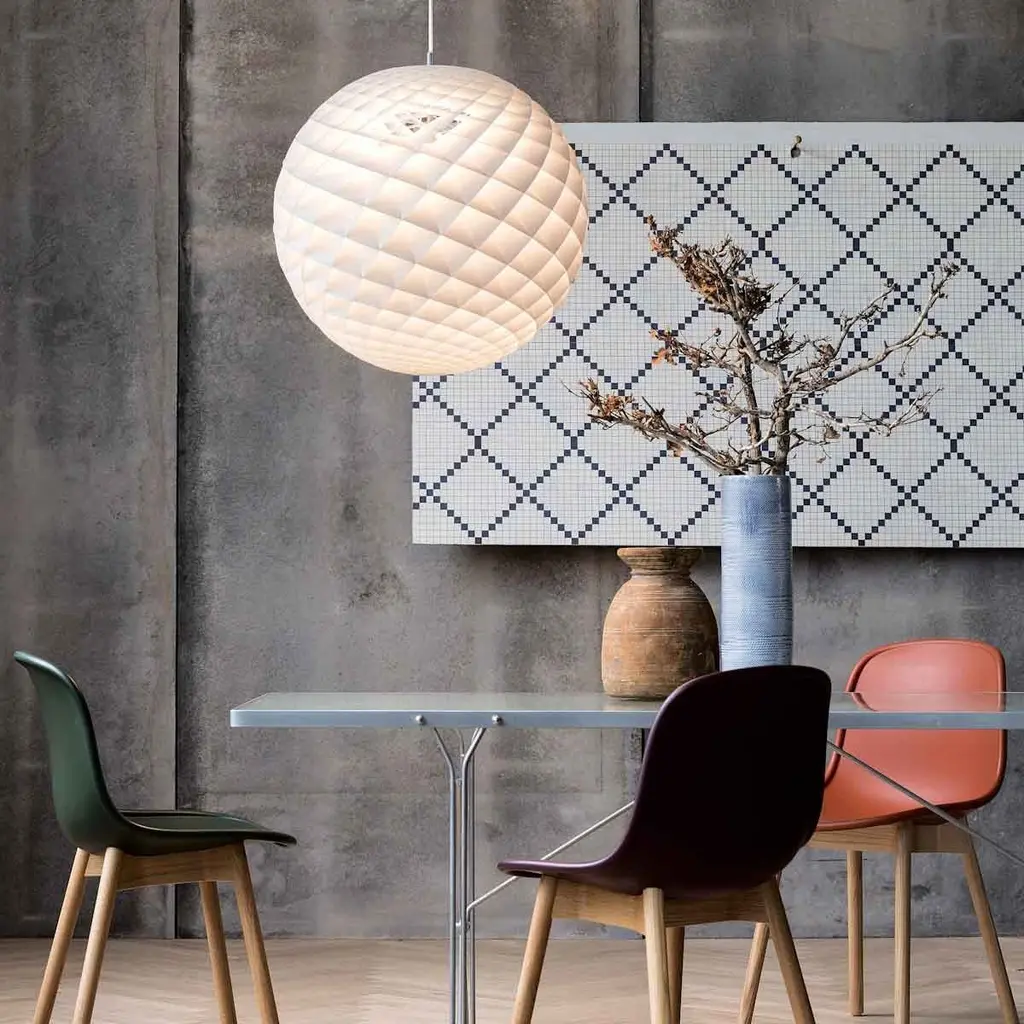 The Patera Pendant shows beauty if fractals. “Patera was born of my fascination with the Fibonacci sequence. You can find the spiral pattern wherever you look in nature – in the seed formation in sunflowers and pine cones, for example – and it has previously inspired Leonardo da Vinci, Johan Sebastian Bach and many other great artists from history," relates Øivind Slaatto regarding the source of inspiration for his new light. With its synthetic material, Patera emits a soft, pleasant light, whose secret lies in its intricate design: the light consists of a variety of differently positioned cells, which ensure that the correct angles are applied to the visor lines of the light and guard against all unpleasant glare. At the same time, the structure staggers the visual center of Patera, consistently providing new impressions of the light when viewed from different angles.