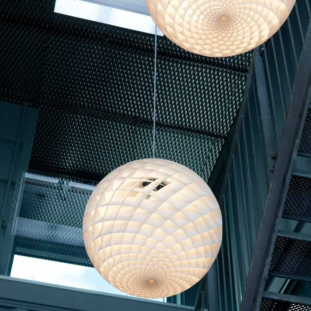 The Patera Pendant shows beauty if fractals. “Patera was born of my fascination with the Fibonacci sequence. You can find the spiral pattern wherever you look in nature – in the seed formation in sunflowers and pine cones, for example – and it has previously inspired Leonardo da Vinci, Johan Sebastian Bach and many other great artists from history," relates Øivind Slaatto regarding the source of inspiration for his new light. With its synthetic material, Patera emits a soft, pleasant light, whose secret lies in its intricate design: the light consists of a variety of differently positioned cells, which ensure that the correct angles are applied to the visor lines of the light and guard against all unpleasant glare. At the same time, the structure staggers the visual center of Patera, consistently providing new impressions of the light when viewed from different angles.