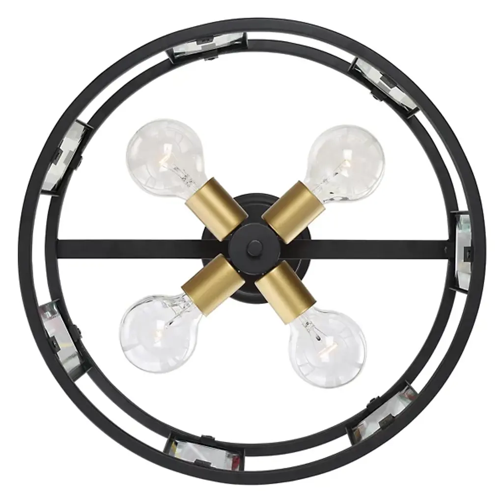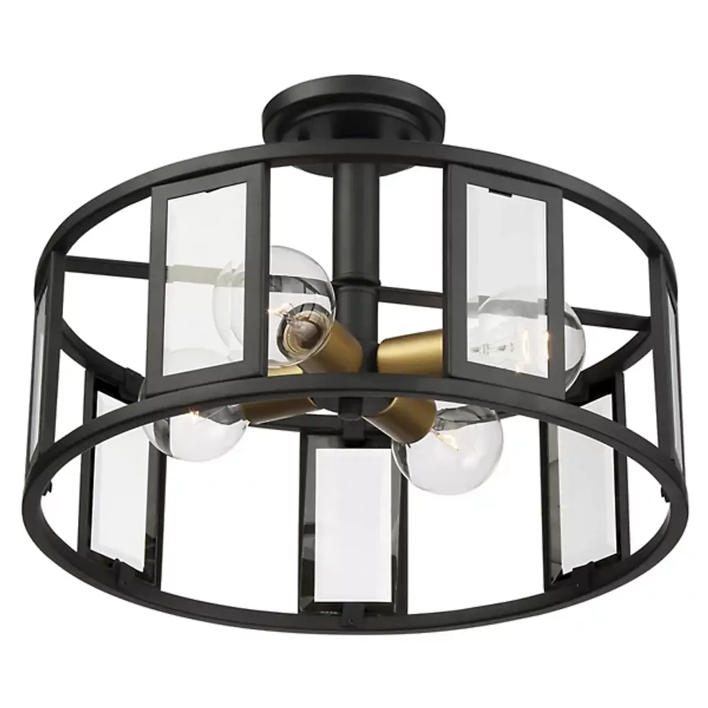 Crown your room with the golden, shining glow of the Patrice Semi-Flushmount from Alder & Ore. It’s a step up in aesthetics. Clean shapes combine to create a modern design that’s visually satisfying from every viewing angle. Giving your rooms an airy, comfortable feel, the piece gives you an open metal frame inspired by the classic drum shade. The luminaire brings the wow factor with an arrangement of beveled glass windows. Peek through the windows and you’ll find an elegant crossing formation of crisp lamp holders. With the bulbs facing in 4 directions, your room receives a spacious glow accented with the shine of the glass.