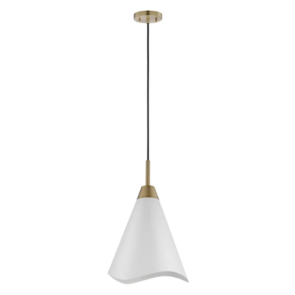 Bring a refined style to inside spaces with the contrasting and curvy design of the Paula Pendant from Alder & Ore. It descends from a smooth circular canopy with a long slender cable for versatile mounting. This cable travels through the center of a short metal stem that leads to the lamping's smooth conical housing. A slender, matte-textured shade sweeps down around the lamping, juxtaposing its matte exterior surface with a reflective, painted interior. The shade's cone shape helps cast a bright wash of light below the fixture.
