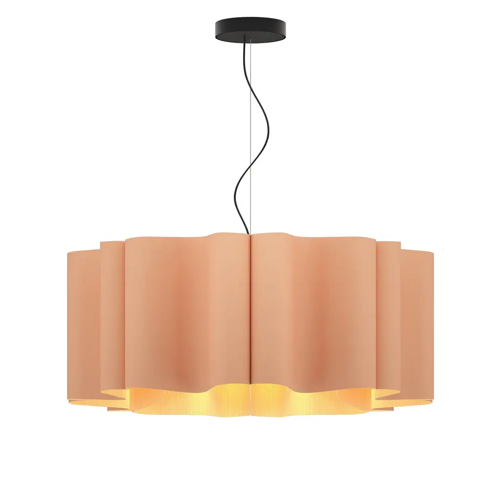 The Paulina 80 Pendant Light from Bruck Lighting exhibits a sustainable wood shade to add a natural aesthetic to your space. Colorful swirls of thin wood veneer create a visual statement highlighted by the warm glow of ambient light. The authentic wood grain is unique to each piece and every fixture’s character is nothing short of livable art. Station above a kitchen countertop or dining room table for a sculptural accent that is equal parts grounding and effervescent. Highlights