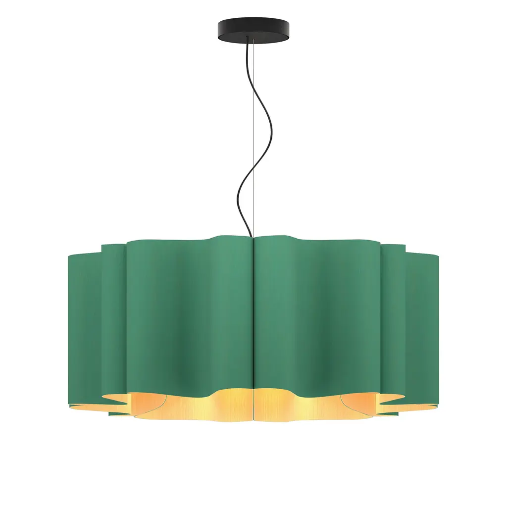 The Paulina 80 Pendant Light from Bruck Lighting exhibits a sustainable wood shade to add a natural aesthetic to your space. Colorful swirls of thin wood veneer create a visual statement highlighted by the warm glow of ambient light. The authentic wood grain is unique to each piece and every fixture’s character is nothing short of livable art. Station above a kitchen countertop or dining room table for a sculptural accent that is equal parts grounding and effervescent. Highlights