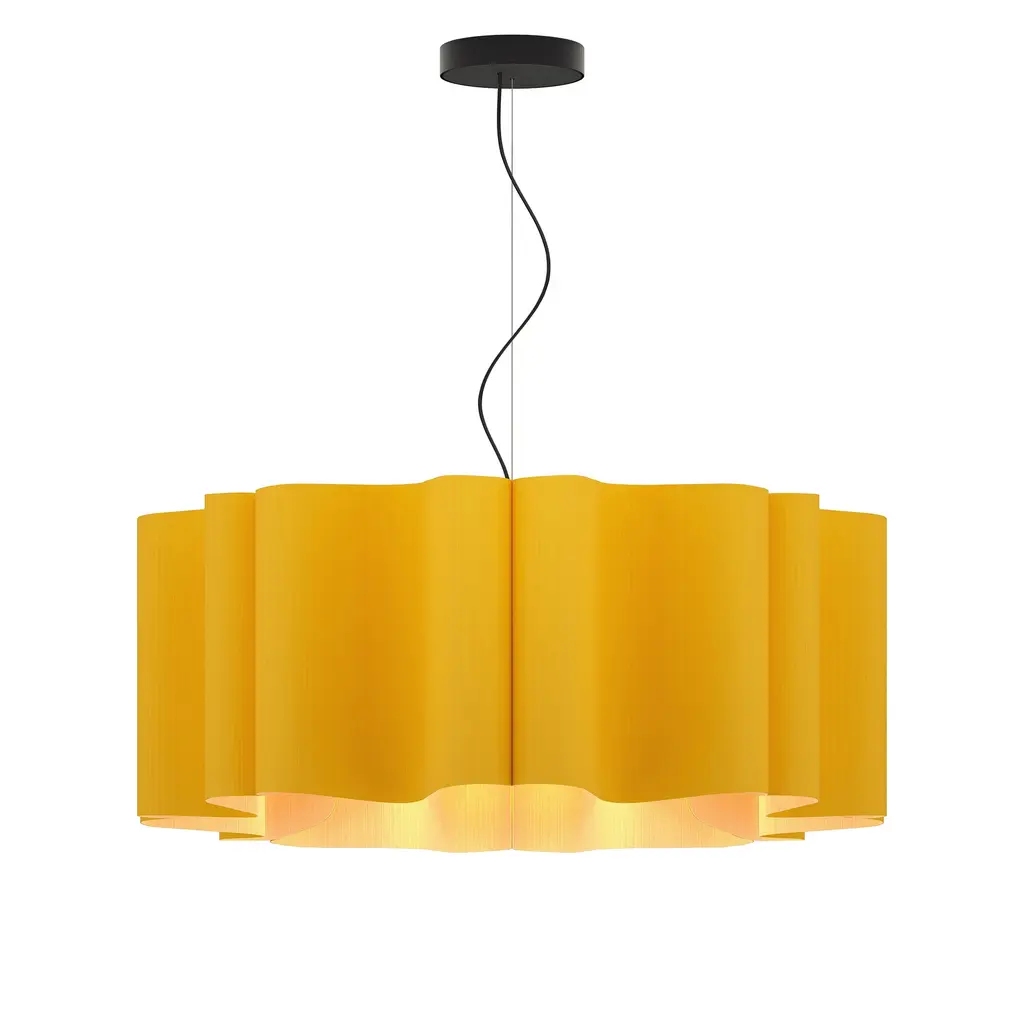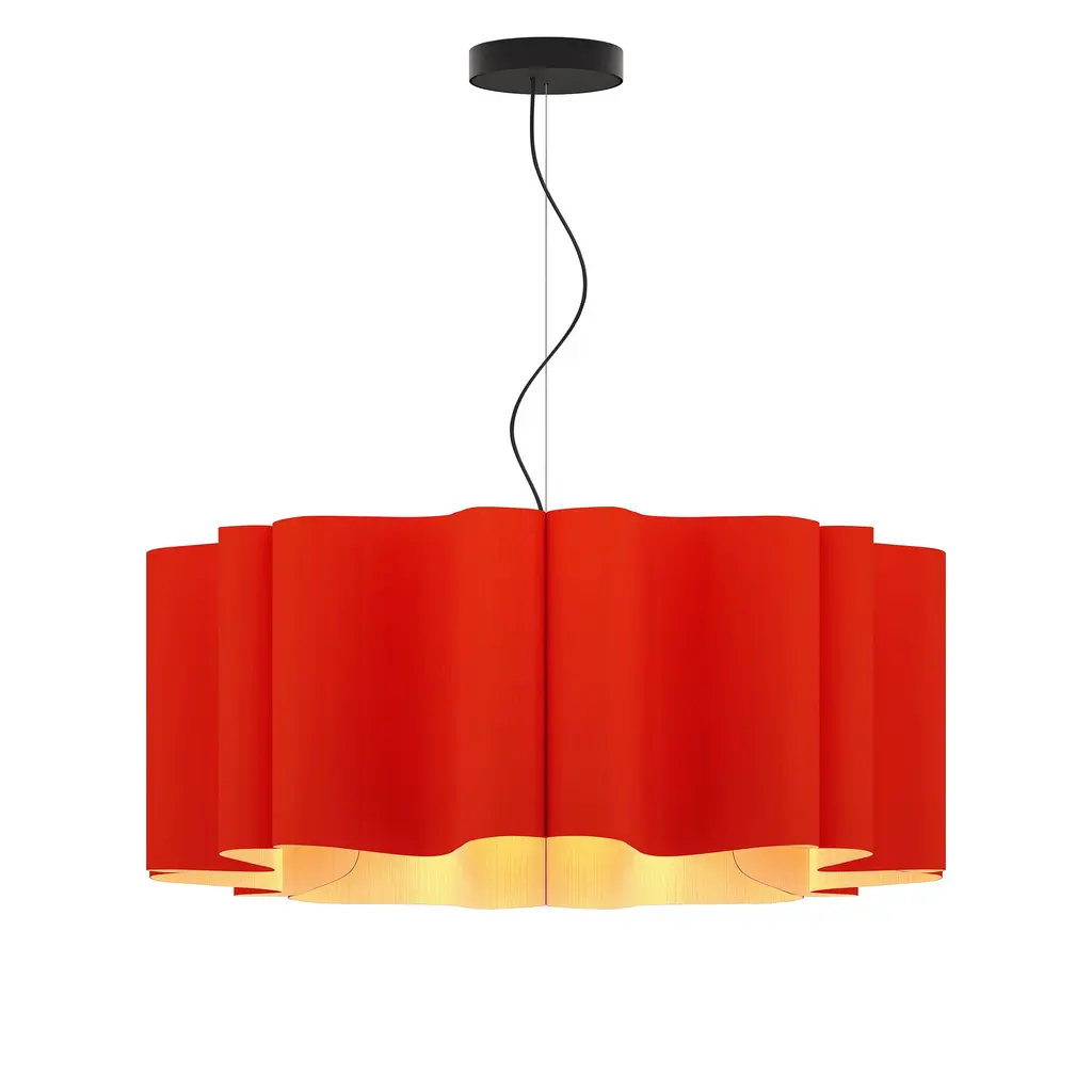 The Paulina 80 Pendant Light from Bruck Lighting exhibits a sustainable wood shade to add a natural aesthetic to your space. Colorful swirls of thin wood veneer create a visual statement highlighted by the warm glow of ambient light. The authentic wood grain is unique to each piece and every fixture’s character is nothing short of livable art. Station above a kitchen countertop or dining room table for a sculptural accent that is equal parts grounding and effervescent. Highlights