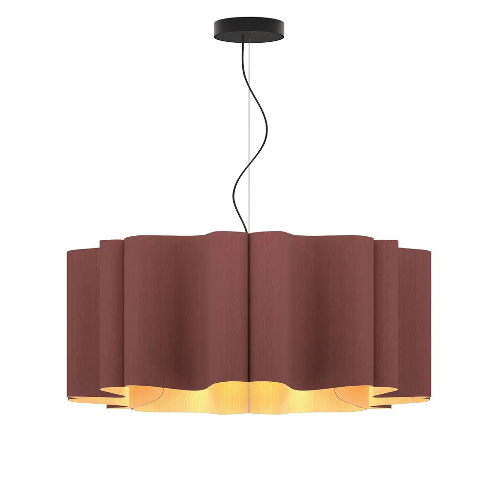 The Paulina 80 Pendant Light from Bruck Lighting exhibits a sustainable wood shade to add a natural aesthetic to your space. Colorful swirls of thin wood veneer create a visual statement highlighted by the warm glow of ambient light. The authentic wood grain is unique to each piece and every fixture’s character is nothing short of livable art. Station above a kitchen countertop or dining room table for a sculptural accent that is equal parts grounding and effervescent. Highlights
