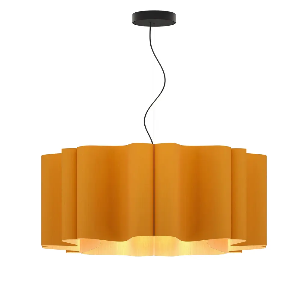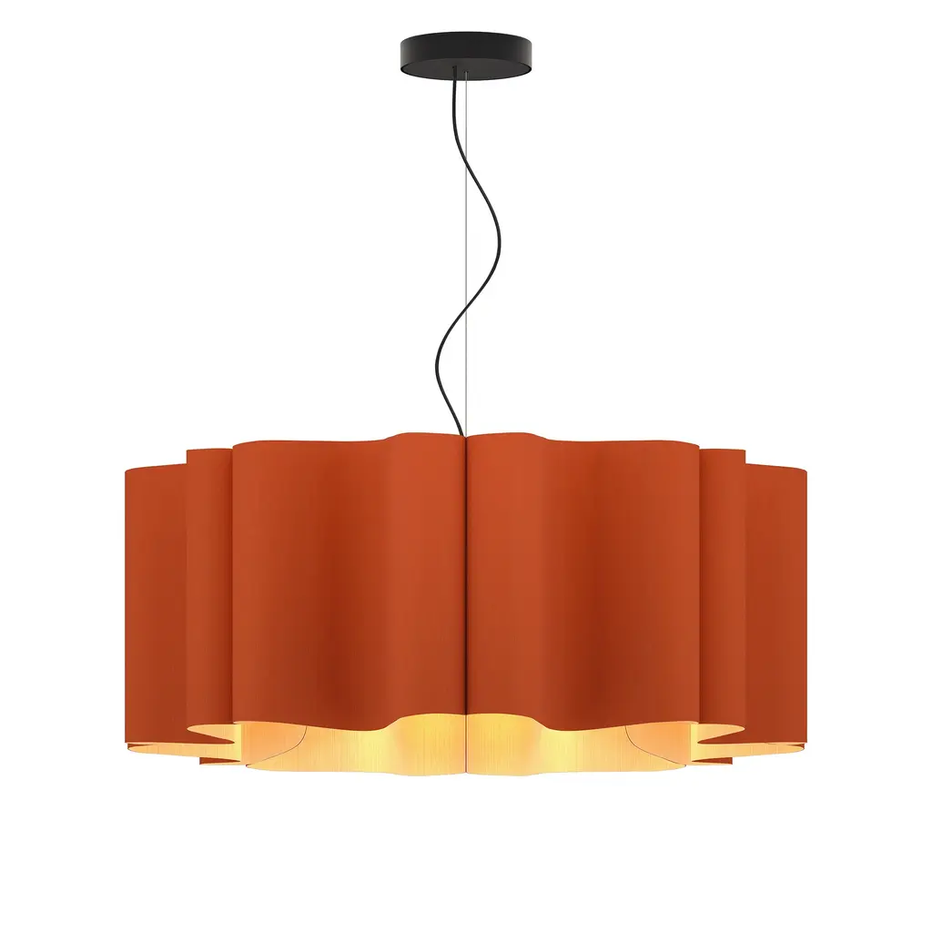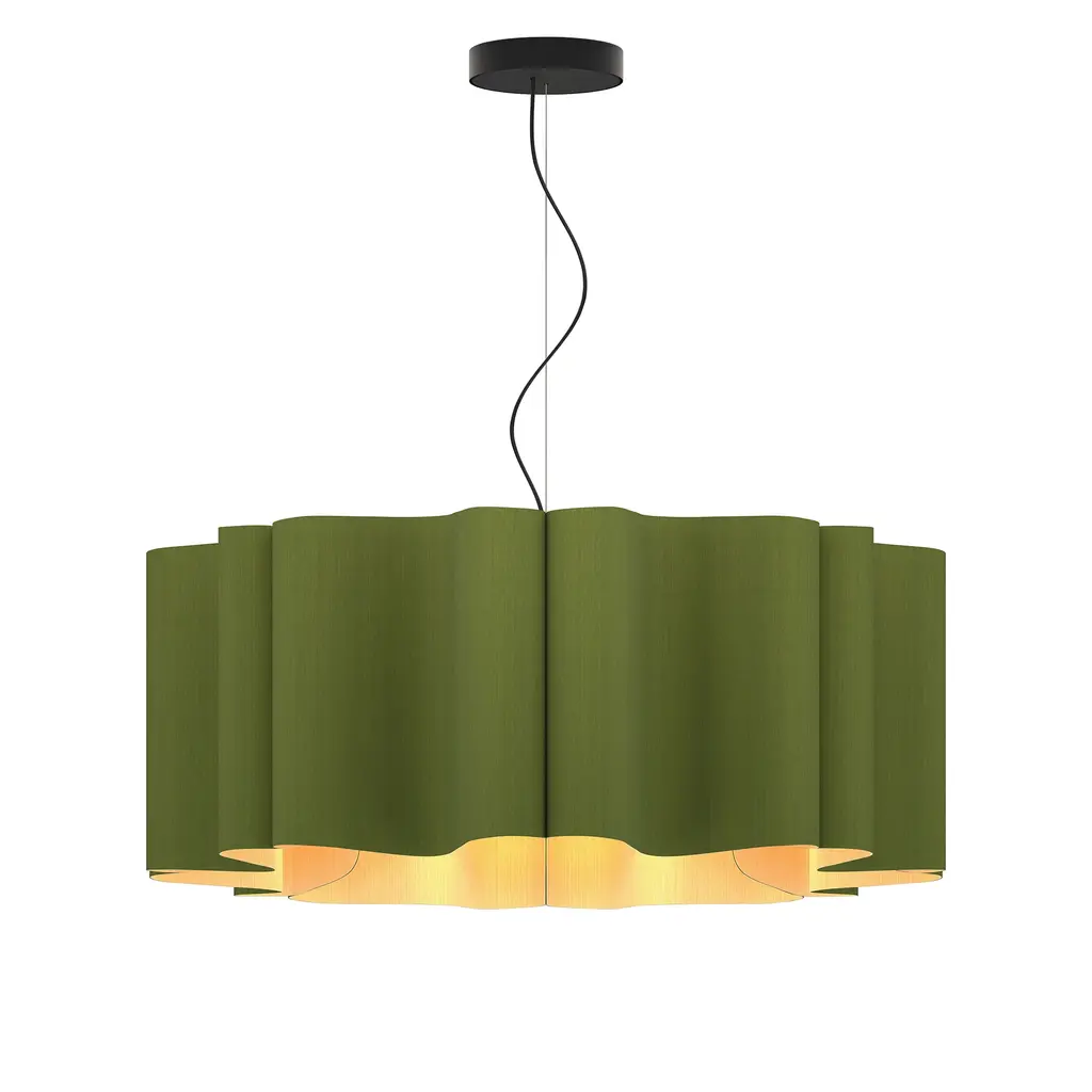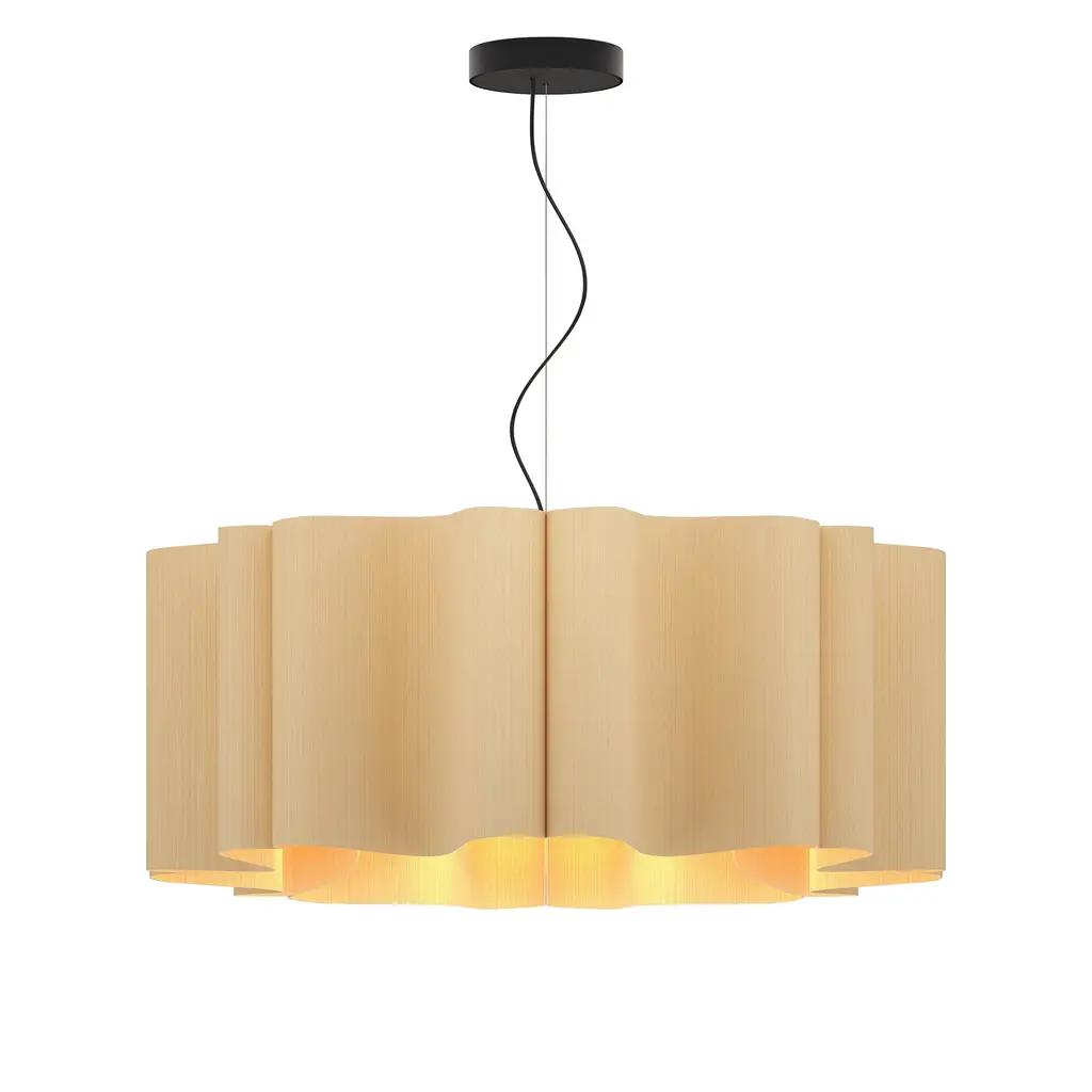 The Paulina 80 Pendant Light from Bruck Lighting exhibits a sustainable wood shade to add a natural aesthetic to your space. Colorful swirls of thin wood veneer create a visual statement highlighted by the warm glow of ambient light. The authentic wood grain is unique to each piece and every fixture’s character is nothing short of livable art. Station above a kitchen countertop or dining room table for a sculptural accent that is equal parts grounding and effervescent. Highlights
